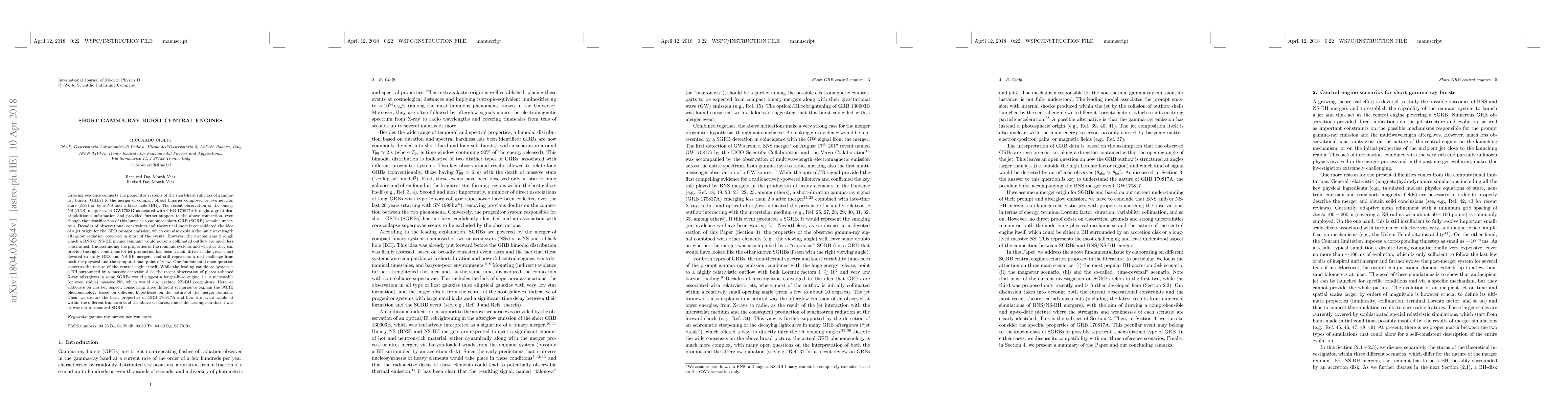 Researchers explore the nature of gamma-ray burst central engines, proposing three scenarios to explain SGRB phenomenology based on different hypotheses about merger remnant properties.