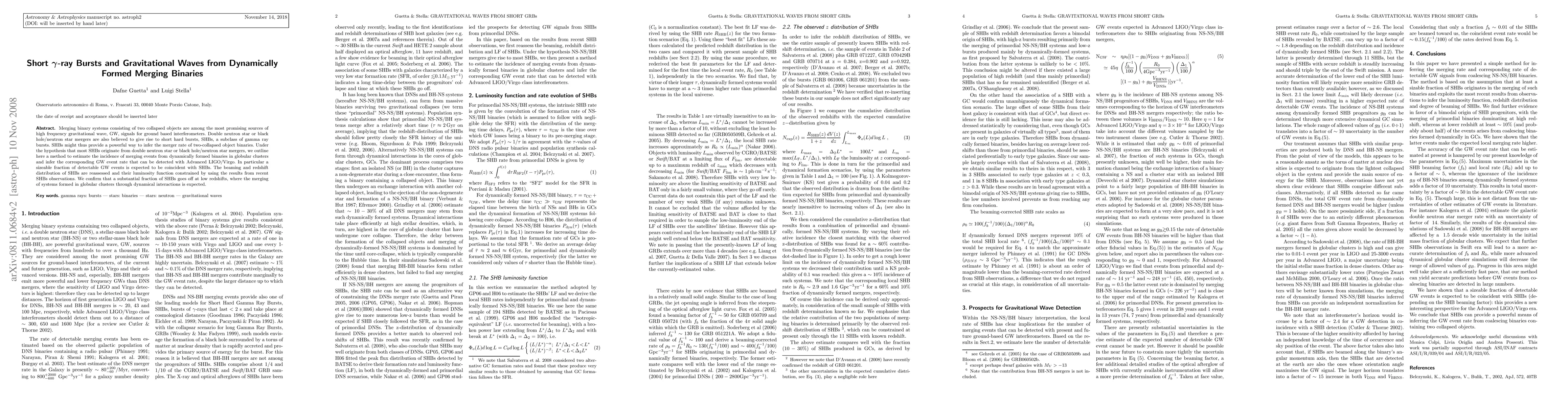 This paper proposes a method to estimate the merger rate of dynamically formed binary systems in globular clusters, linking short hard gamma-ray bursts (SHBs) to gravitational wave (GW) signals detectable by Advanced LIGO/Virgo. It reassesses the beaming and redshift distribution of SHBs, confirming a significant fraction originate from low redshifts, where mergers in globular clusters are expected.