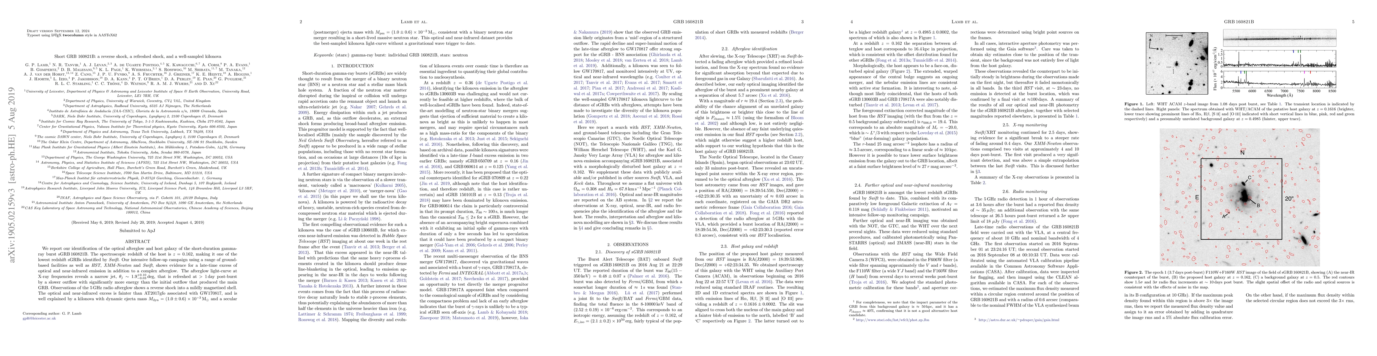 This paper identifies the optical afterglow and host galaxy of short-duration gamma-ray burst GRB 160821B, revealing a complex afterglow with a refreshed jet and reverse shock. The well-sampled kilonova suggests a binary neutron star merger, providing the best-sampled kilonova light-curve without a gravitational wave trigger.