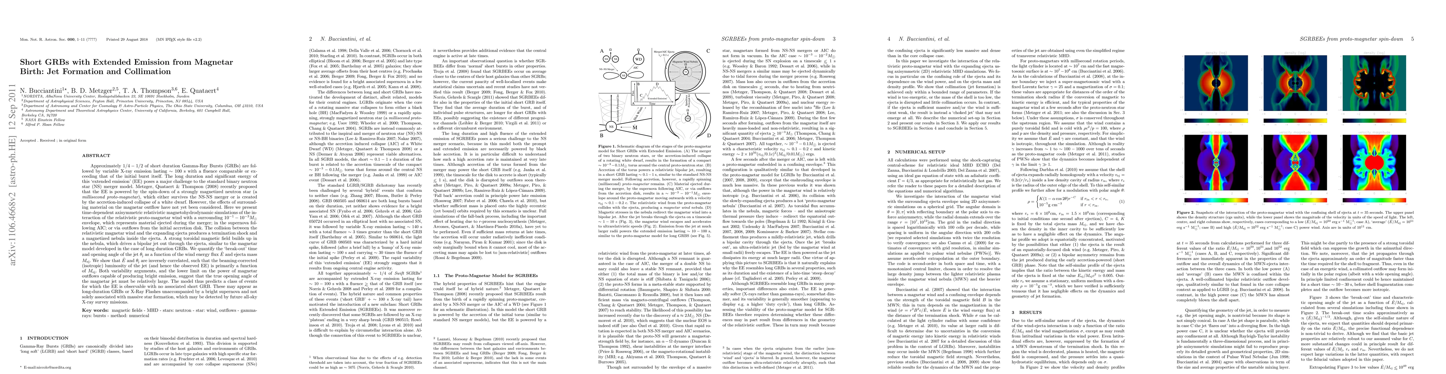 Approximately 1/4-1/2 of short duration Gamma-Ray Bursts are followed by variable X-ray emission lasting ~ 100 s with a fluence comparable or exceeding that of the initial burst itself. The long duration and significant energy of this `extended emission'(EE) poses a major challenge to the standard binary neutron star merger model. metzger08 recently proposed that the EE is powered by the spin-down of a strongly magnetized neutron star. However, the effects of surrounding material on the magnetar outflow have not yet been considered. Here we present time-dependent axisymmetric relativistic magnetohydrodynamic simulations of the interaction of the relativistic proto-magnetar wind with a surrounding 10^-1 10^-3 M_\odot envelope, which represents material ejected during the merger; the supernova following AIC; or via outflows from the accretion disk. The collision between the relativistic magnetar wind and the expanding ejecta produces a magnetized nebula inside the ejecta. A strong toroidal magnetic field builds up in the nebula, which drives a bipolar jet out through the ejecta, similar to the magnetar model developed in the case of long duration GRBs. We quantify the `break-out' time and opening angle of the jet theta_j as a function of the wind energy flux dot{E} and ejecta mass M_ej. We show that dot{E} and theta_j are inversely correlated, such that the beaming-corrected (isotropic) luminosity of the jet is primarily a function of M_ej. Both variability arguments, and the lower limit on the power of magnetar outflows capable of producing bright emission, suggest that the true opening angle of the magnetar jet must be relatively large. The model thus predicts a class of events for which the EE is observable with no associated short GRB. These may appear as long-duration GRBs or X-Ray Flashes, which may be detected by future all-sky X-ray survey missions.