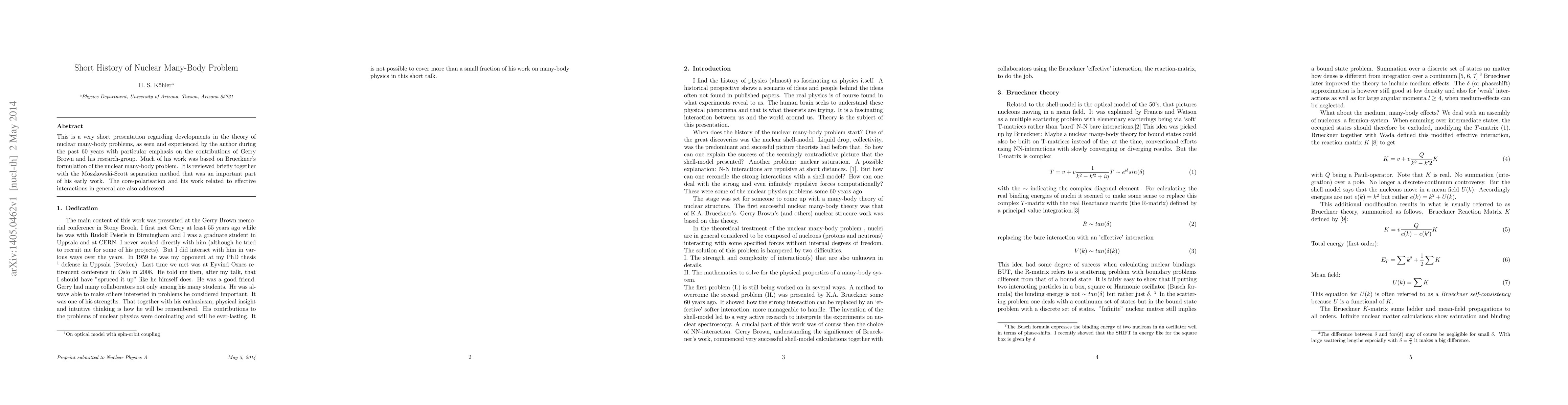 This is a very short presentation regarding developments in the theory of nuclear many-body problems, as seen and experienced by the author during the past 60 years with particular emphasis on the contributions of Gerry Brown and his research-group. Much of his work was based on Brueckner's formulation of the nuclear many-body problem. It is reviewed briefly together with the Moszkowski-Scott separation method that was an important part of his early work. The core-polarisation and his work related to effective interactions in general are also addressed.