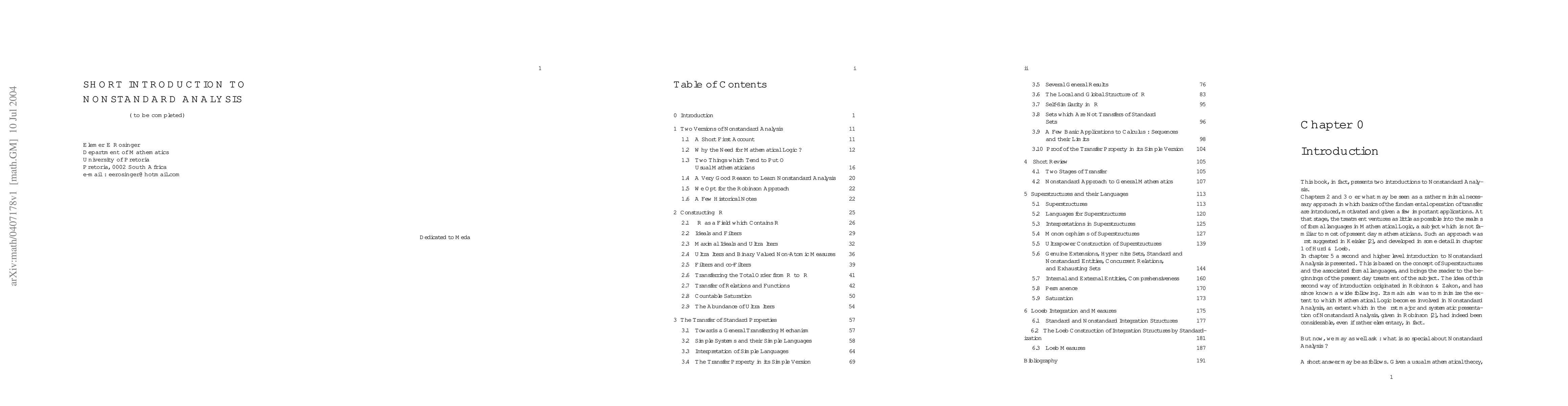This lecture notes introduces Nonstandard Analysis, focusing on Loeb integration and measures, using a rigorous approach with detailed comments, targeting the Abraham Robinson version of Nostandard Analysis.