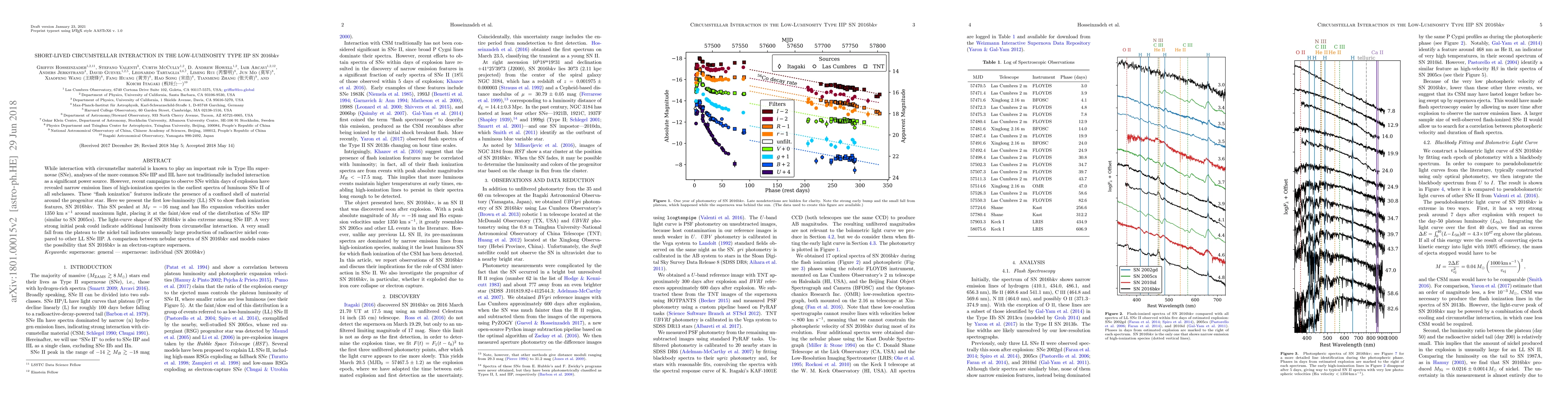 This paper investigates the short-lived circumstellar interaction in the low-luminosity Type IIP supernova SN 2016bkv, revealing "flash ionization" features indicative of a circumstellar material shell. The unusual light-curve shape and high production of radioactive nickel suggest significant circumstellar interaction and possibly an electron-capture supernova origin.