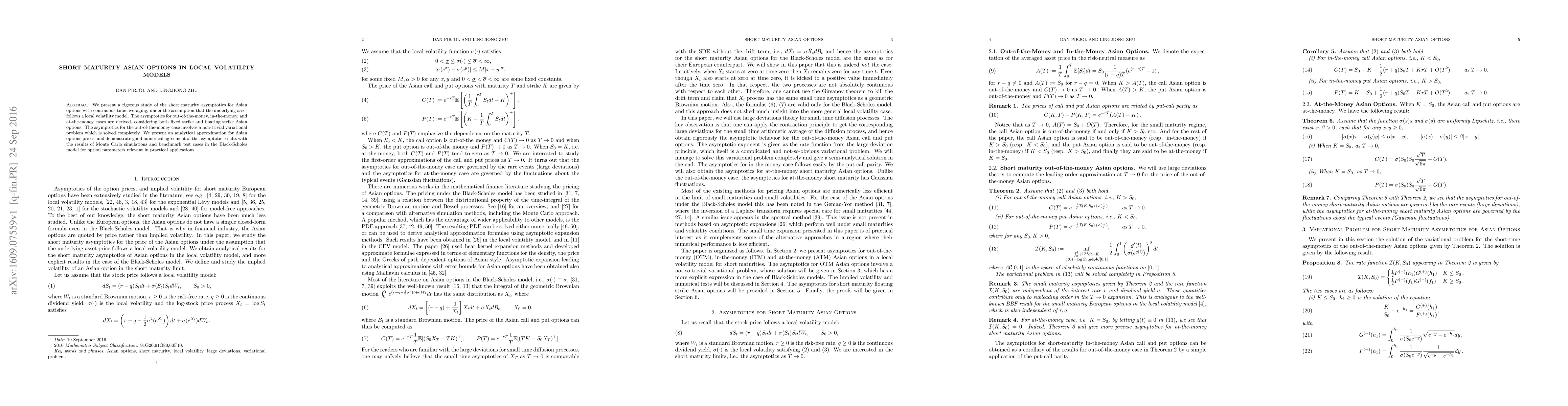 This paper rigorously derives the short maturity asymptotics for Asian options under local volatility models, providing analytical approximations for both fixed and floating strike options. The study shows strong numerical agreement between the derived asymptotic results and Monte Carlo simulations, particularly for practical option parameters.