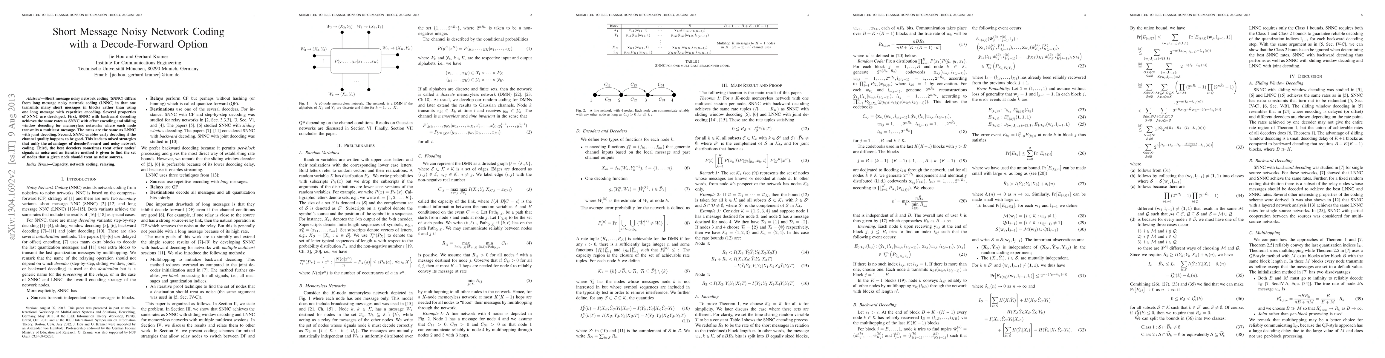 Short message noisy network coding (SNNC) differs from long message noisy network coding (LNNC) in that one transmits many short messages in blocks rather than using one long message with repetitive encoding. Several properties of SNNC are developed. First, SNNC with backward decoding achieves the same rates as SNNC with offset encoding and sliding window decoding for memoryless networks where each node transmits a multicast message. The rates are the same as LNNC with joint decoding. Second, SNNC enables early decoding if the channel quality happens to be good. This leads to mixed strategies that unify the advantages of decode-forward and noisy network coding. Third, the best decoders sometimes treat other nodes' signals as noise and an iterative method is given to find the set of nodes that a given node should treat as noise sources.