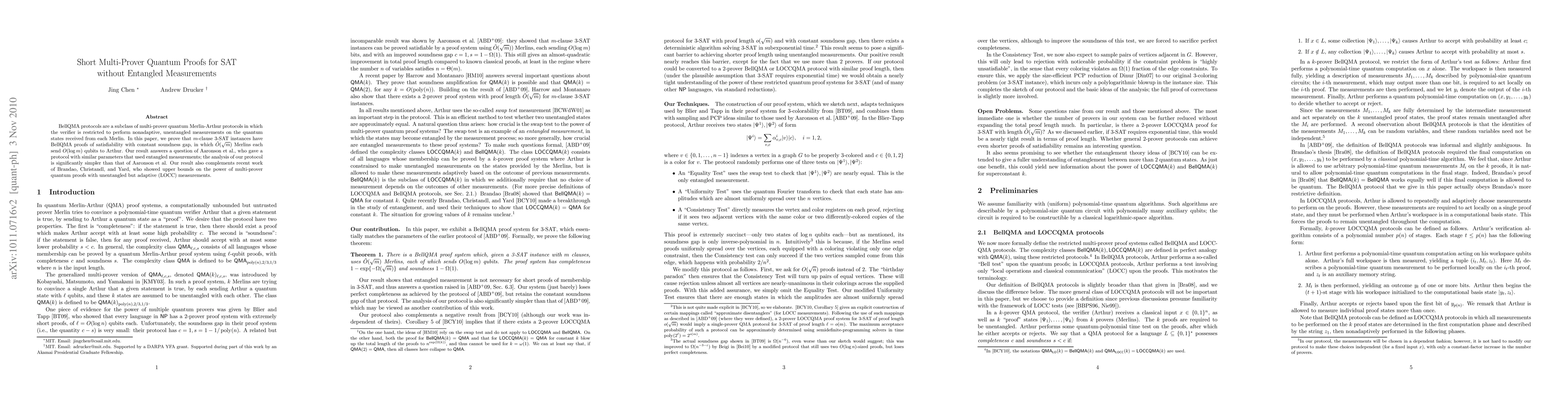 BellQMA protocols are a subclass of multi-prover quantum Merlin-Arthur protocols in which the verifier is restricted to perform nonadaptive,unentangled measurements on the quantum states received from each Merlin. In this paper, we prove that m-clause 3-SAT instances have BellQMA proofs of satisfiability with constant soundness gap, in which O(sqrt(m)polylog(m)) Merlins each send O(log m) qubits to Arthur. Our result answers a question of Aaronson et al., who gave a protocol with similar parameters that used entangled measurements; the analysis of our protocol is significantly simpler than that of Aaronson et al. Our result also complements recent work of Brandao, Christandl, and Yard, who showed upper bounds on the power of multiprover quantum proofs with unentangled but adaptive (LOCC) measurements.