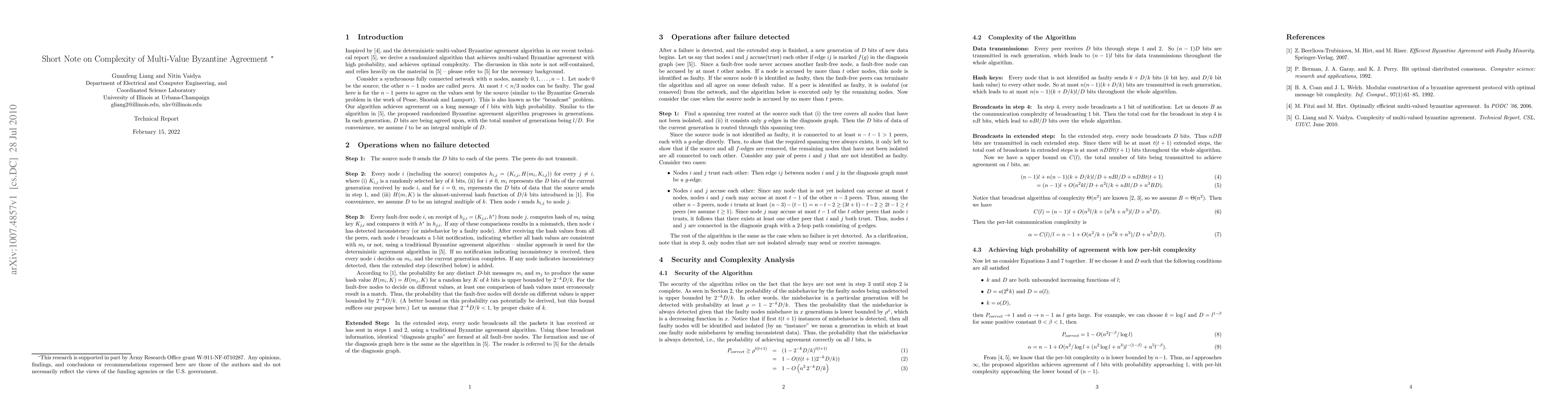 Randomized algorithm that achieves multi-valued Byzantine agreement with high probability, and achieves optimal complexity.
