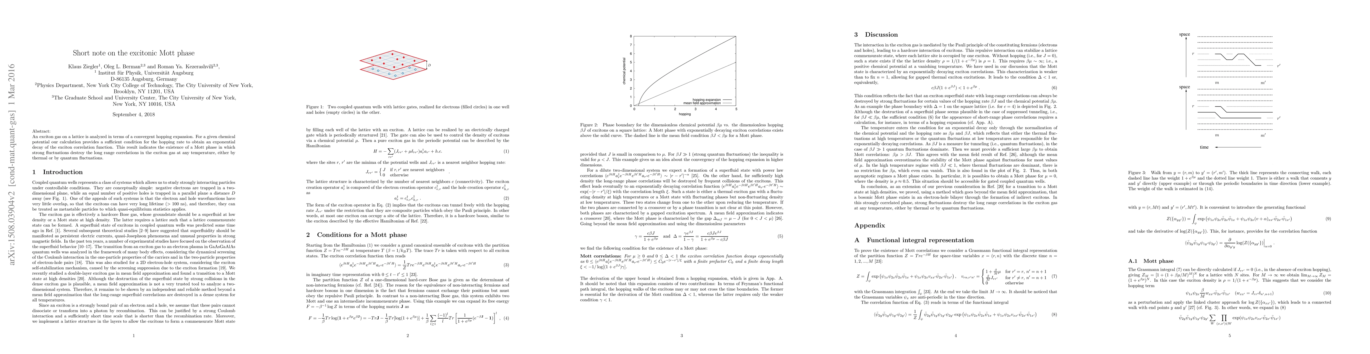 An exciton gas on a lattice is analyzed in terms of a convergent hopping expansion. For a given chemical potential our calculation provides a sufficient condition for the hopping rate to obtain an exponential decay of the exciton correlation function. This result indicates the existence of a Mott phase in which strong fluctuations destroy the long range correlations in the exciton gas at any temperature, either by thermal or by quantum fluctuations.