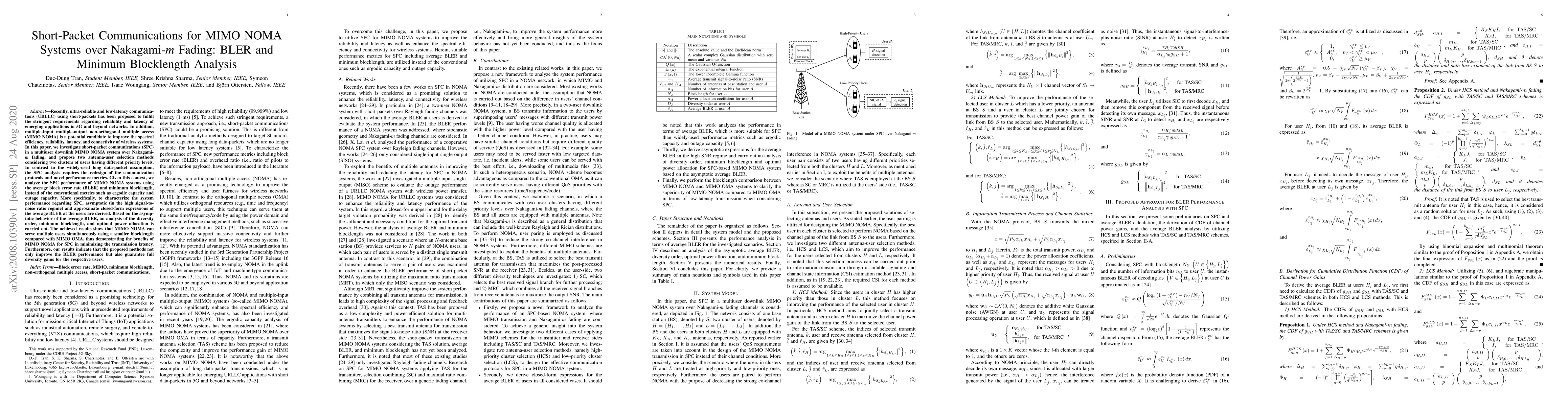 This paper investigates short-packet communications in MIMO NOMA systems over Nakagami-m fading, proposing antenna-user selection methods for different priority levels. It analyzes performance using average BLER and minimum blocklength, showing MIMO NOMA can serve multiple users with lower latency compared to MIMO OMA, while achieving full diversity gains.