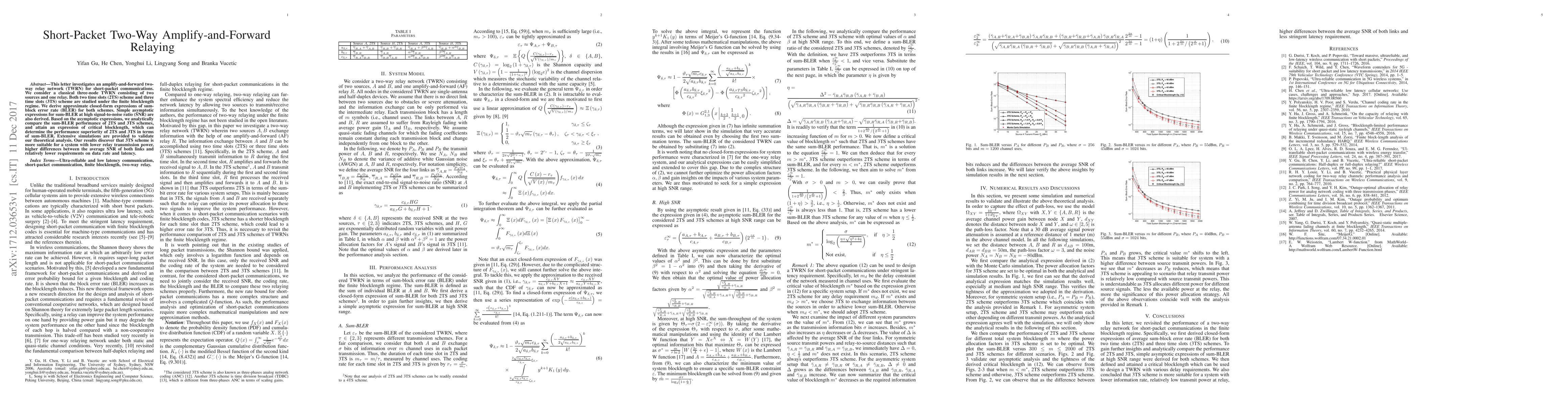 A research paper investigates two-way relay networks for short-packet communications, comparing a 2-time slot scheme to a 3-time slot scheme in terms of performance and suitability for different system requirements.