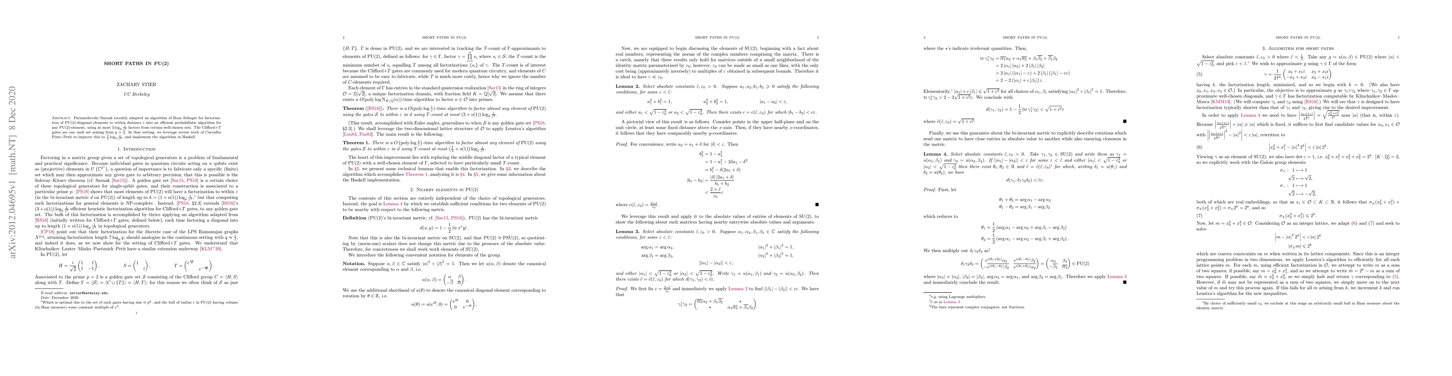 This paper presents an efficient probabilistic algorithm for factorizing any PU(2)-element into short paths using Clifford+$T$ gates, improving the previous bound to $\frac{7}{3}\log_2\frac{1}{\varepsilon^3}$ and implementing it in Haskell.