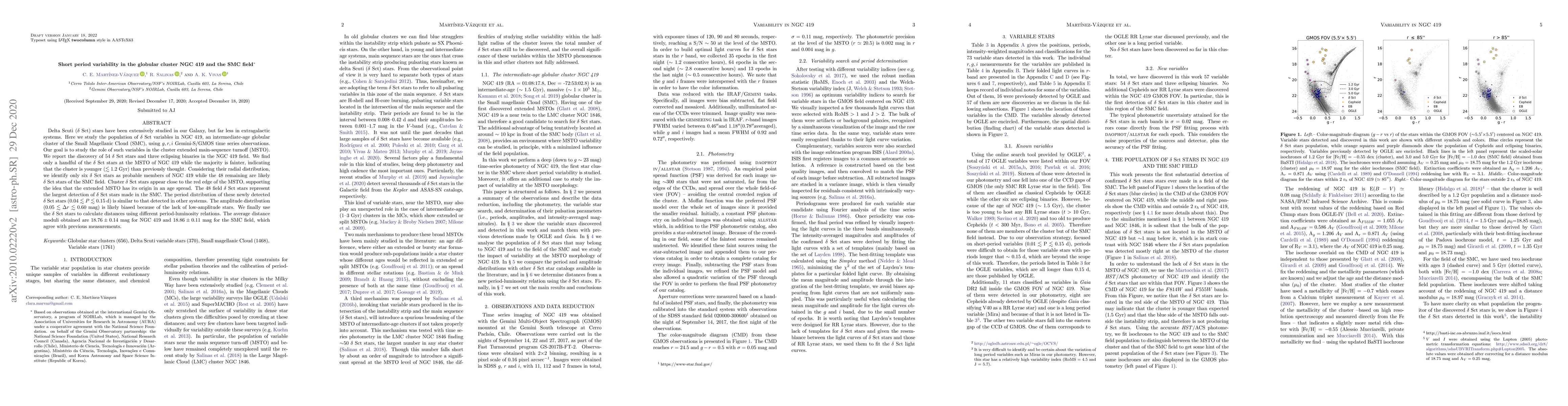 This study identifies 54 Delta Scuti stars and three eclipsing binaries in NGC 419, a globular cluster in the Small Magellanic Cloud, suggesting the cluster is younger than previously thought. The majority of these variables are likely field stars, indicating an age spread contributing to the cluster's extended main-sequence turnoff.