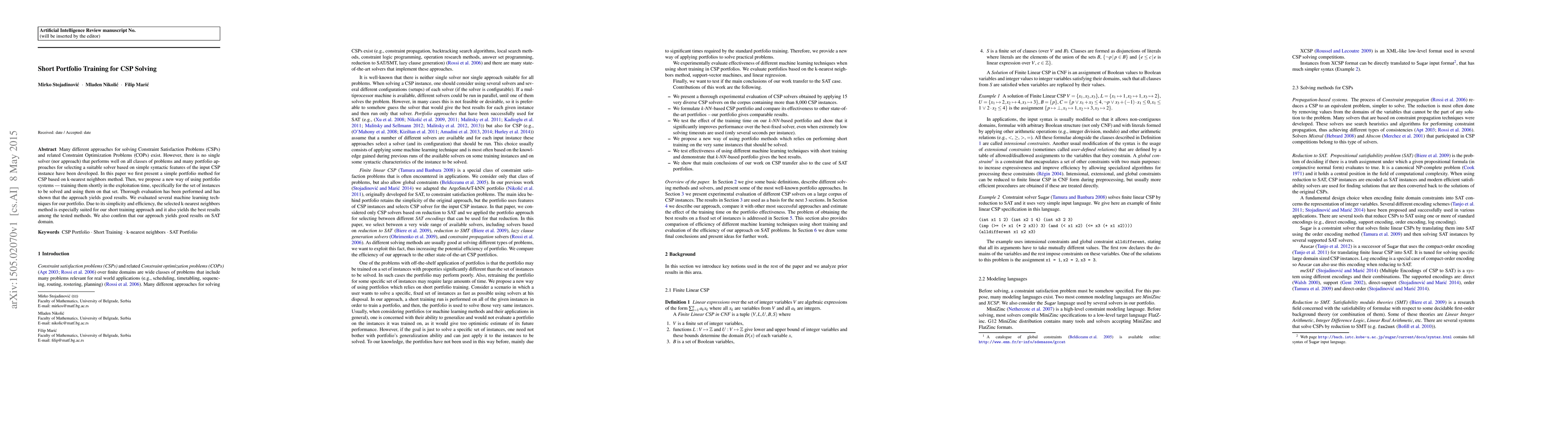 Many different approaches for solving Constraint Satisfaction Problems (CSPs) and related Constraint Optimization Problems (COPs) exist. However, there is no single solver (nor approach) that performs well on all classes of problems and many portfolio approaches for selecting a suitable solver based on simple syntactic features of the input CSP instance have been developed. In this paper we first present a simple portfolio method for CSP based on k-nearest neighbors method. Then, we propose a new way of using portfolio systems --- training them shortly in the exploitation time, specifically for the set of instances to be solved and using them on that set. Thorough evaluation has been performed and has shown that the approach yields good results. We evaluated several machine learning techniques for our portfolio. Due to its simplicity and efficiency, the selected k-nearest neighbors method is especially suited for our short training approach and it also yields the best results among the tested methods. We also confirm that our approach yields good results on SAT domain.