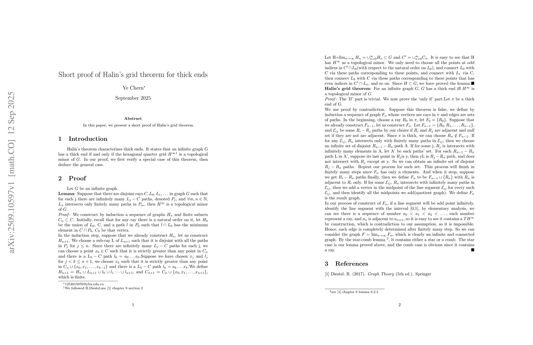 This research provides a concise and structured proof of Halin's grid theorem, which is fundamental in understanding the structure of infinite graphs and their topological properties. It contributes to the field of graph theory by offering a clearer pathway to analyze thick ends in infinite graphs.