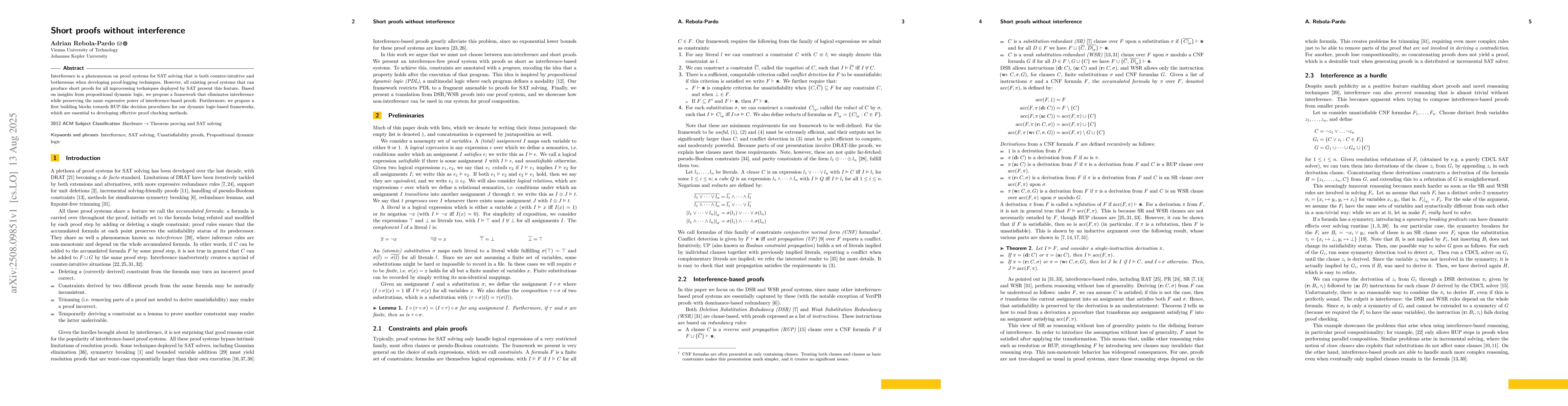 Interference is a phenomenon on proof systems for SAT solving that is both counter-intuitive and bothersome when developing proof-logging techniques. However, all existing proof systems that can produce short proofs for all inprocessing techniques deployed by SAT present this feature. Based on insights from propositional dynamic logic, we propose a framework that eliminates interference while preserving the same expressive power of interference-based proofs. Furthermore, we propose a first building blocks towards RUP-like decision procedures for our dynamic logic-based frameworks, which are essential to developing effective proof checking methods.