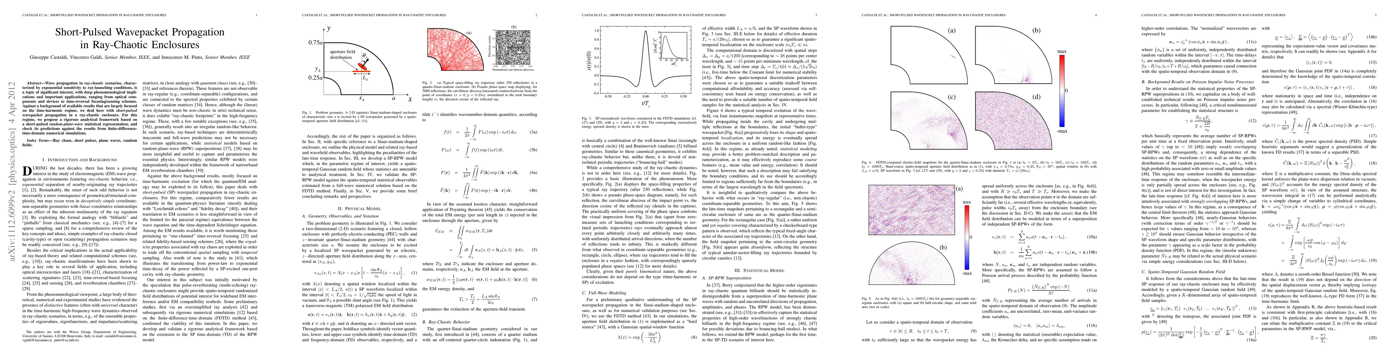 Wave propagation in ray-chaotic scenarios, characterized by exponential sensitivity to ray-launching conditions, is a topic of significant interest, with deep phenomenological implications and important applications, ranging from optical components and devices to time-reversal focusing/sensing schemes. Against a background of available results that are largely focused on the time-harmonic regime, we deal here with short-pulsed wavepacket propagation in a ray-chaotic enclosure. For this regime, we propose a rigorous analytical framework based on a short-pulsed random-plane-wave statistical representation, and check its predictions against the results from finite-difference-time-domain numerical simulations.