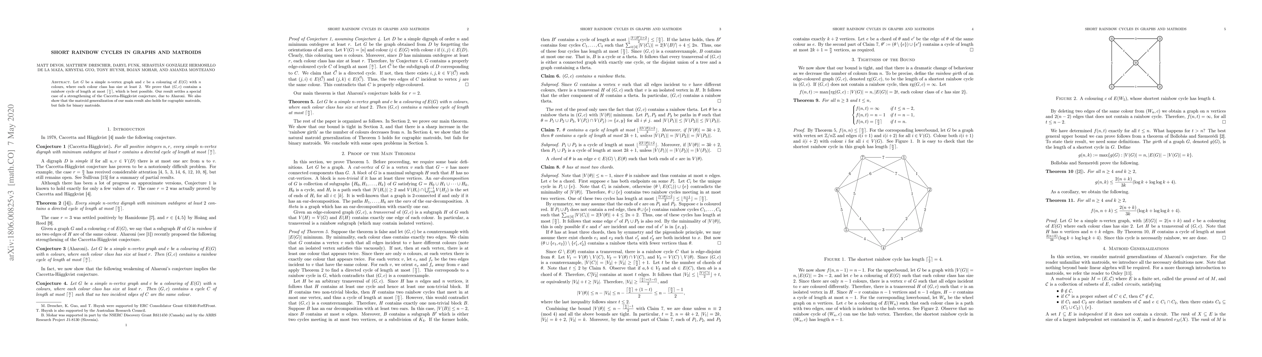 Researchers prove that a simple graph with a specific colouring can have a rainbow cycle of length at most n/2, settling a conjecture and providing insights into matroid generalizations.
