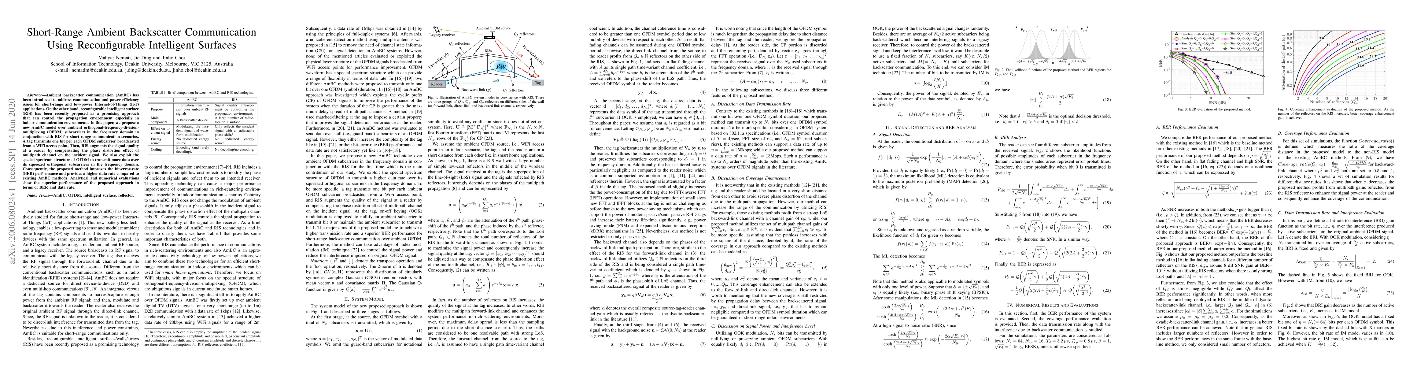 This paper proposes a novel ambient backscatter communication model using reconfigurable intelligent surfaces (RIS) to enhance short-range, low-power IoT communication. The method leverages ambient OFDM subcarriers and RIS to improve signal quality and data rate, achieving better bit-error-rate performance compared to existing methods.