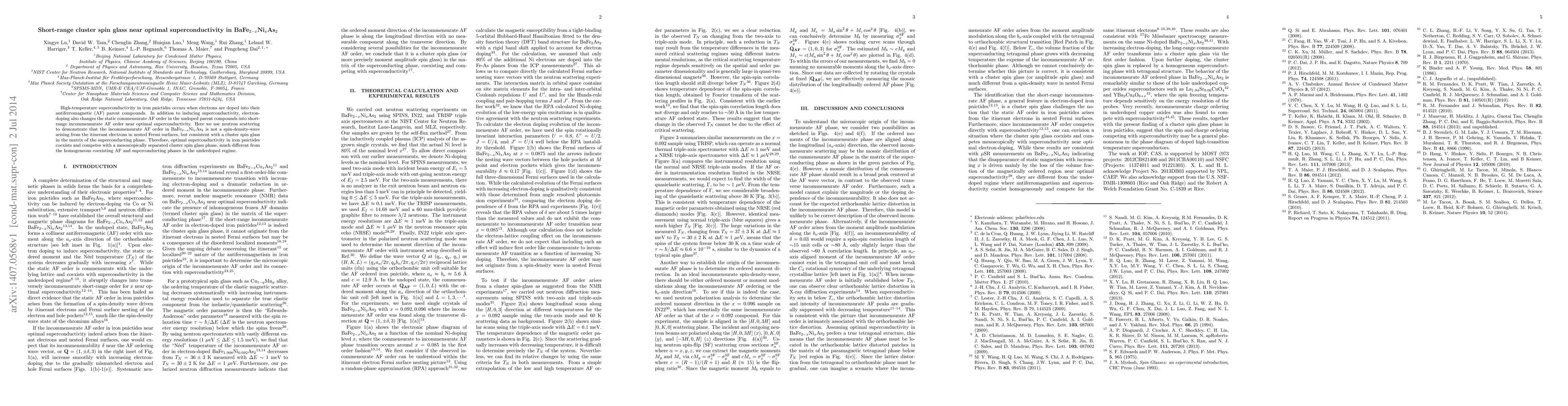 This paper demonstrates that in BaFe$_{2-x}$Ni$_{x}$As$_{2}$, the incommensurate antiferromagnetic order near optimal superconductivity is a cluster spin glass rather than a spin-density wave, indicating a coexistence and competition between superconductivity and a distinct spin glass phase. This contrasts with the homogeneous coexistence seen in the underdoped regime.