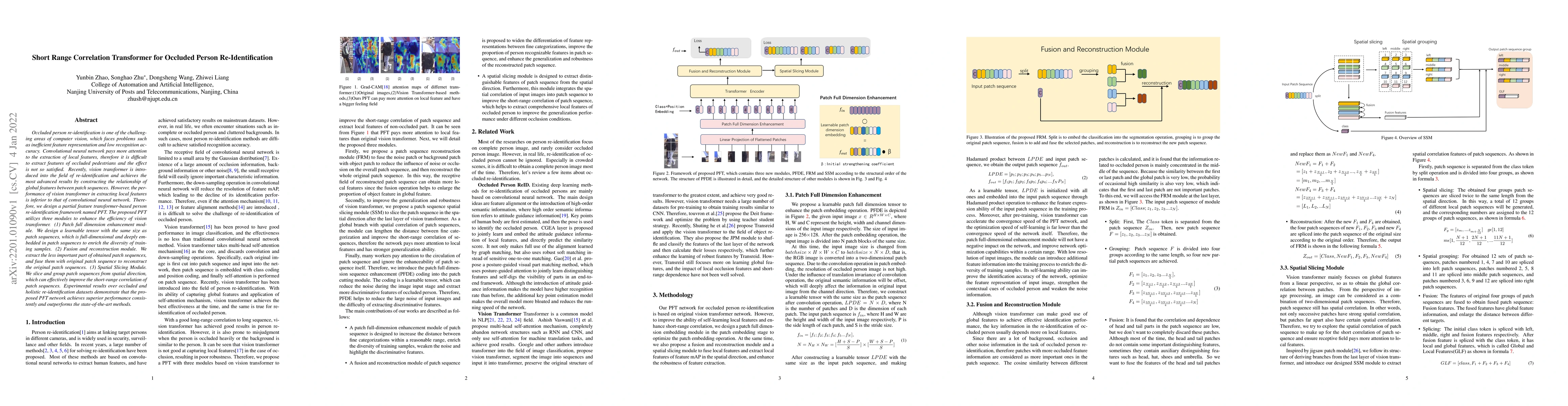The paper proposes a Partial Feature Transformer (PFT) framework for occluded person re-identification, combining vision transformer with convolutional neural network features to enhance local and global feature extraction. The PFT framework includes modules for patch enhancement, fusion, and spatial slicing to improve short-range correlations, achieving superior performance over existing methods.