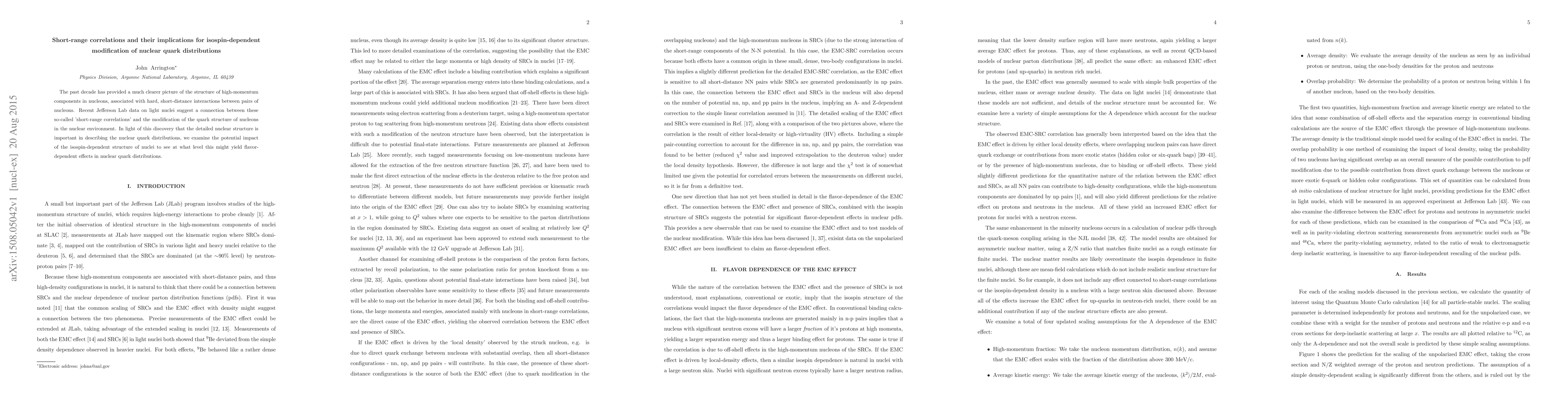 The past decade has provided a much clearer picture of the structure of high-momentum components in nucleons, associated with hard, short-distance interactions between pairs of nucleons. Recent Jefferson Lab data on light nuclei suggest a connection between these so-called 'short-range correlations' and the modification of the quark structure of nucleons in the nuclear environment. In light of this discovery that the detailed nuclear structure is important in describing the nuclear quark distributions, we examine the potential impact of the isospin-dependent structure of nuclei to see at what level this might yield flavor-dependent effects in nuclear quark distributions.