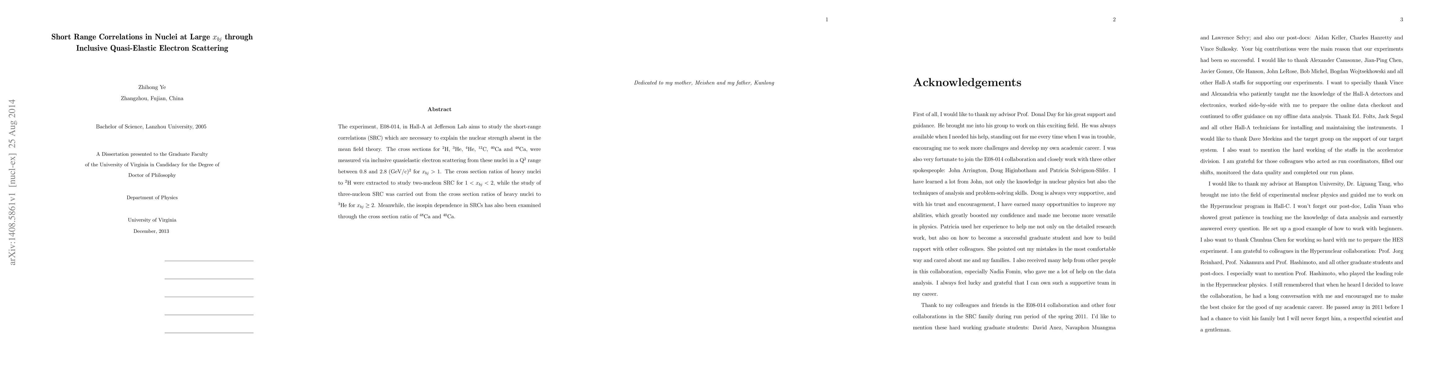 The experiment, E08-014, in Hall-A at Jefferson Lab aims to study the