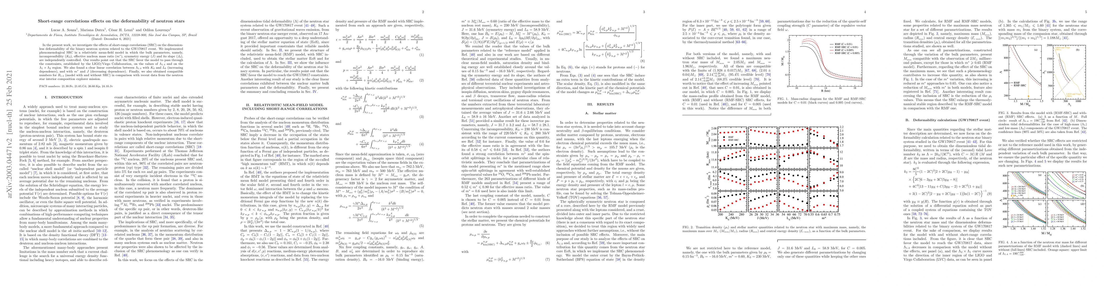 Researchers studied how short-range correlations affect neutron star deformability, finding a linear correlation between deformability parameters and mass ratios.