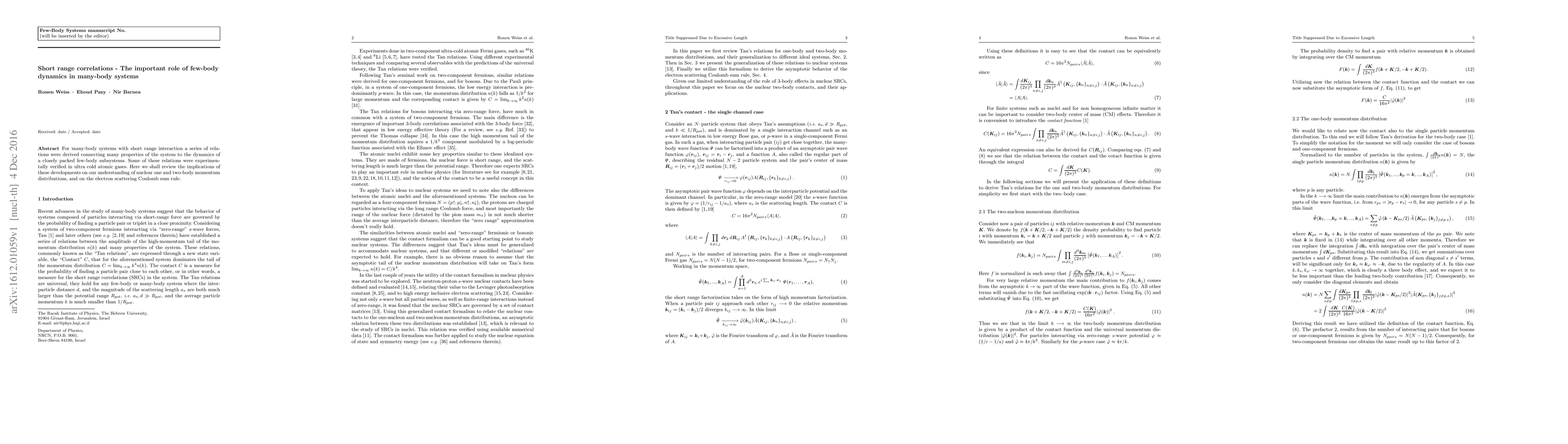 For many-body systems with short range interaction a series of relations were derived connecting many properties of the system to the dynamics of a closely packed few-body subsystems. Some of these relations were experimentally verified in ultra cold atomic gases. Here we shall review the implications of these developments on our understanding of nuclear one and two-body momentum distributions, and on the electron scattering Coulomb sum rule.