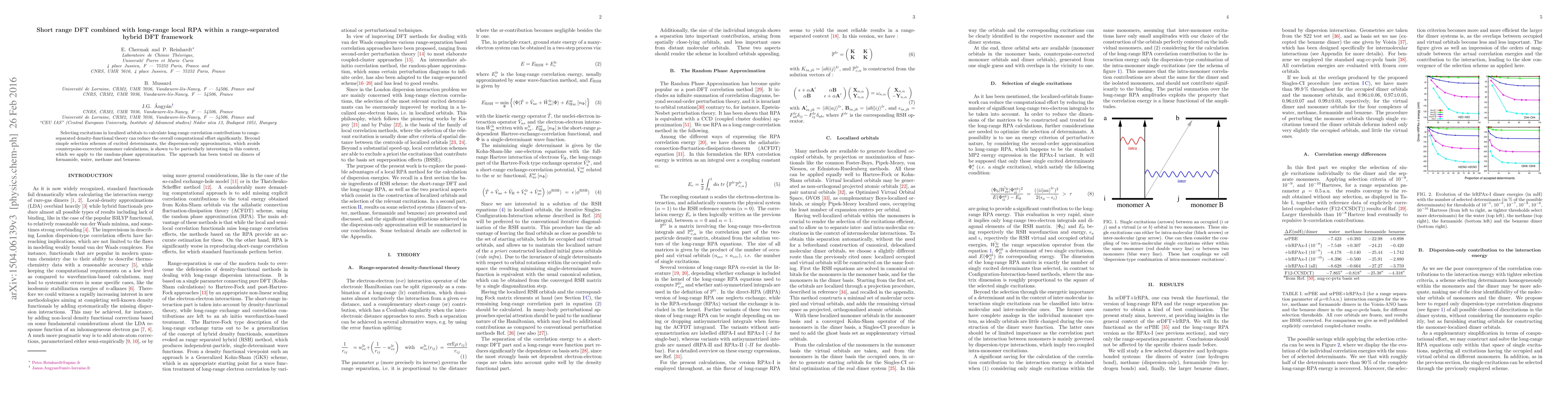 This paper proposes a computational method combining short-range DFT with long-range local RPA within a range-separated hybrid DFT framework, utilizing the dispersion-only approximation to reduce computational costs. The method is tested on dimers of formamide, water, methane, and benzene.