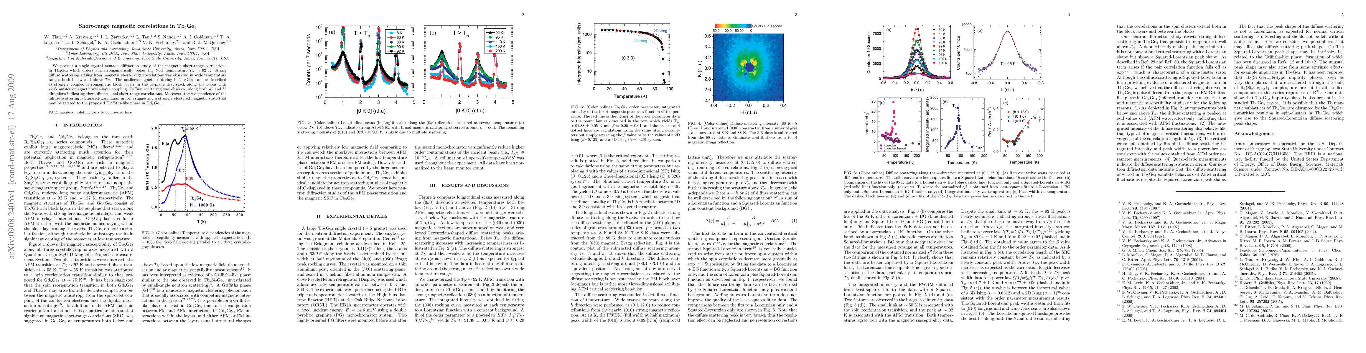 This study reveals strong magnetic short-range correlations in Tb$_5$Ge$_4$ via single crystal neutron diffraction, showing antiferromagnetic ordering below 92 K. The material exhibits three-dimensional diffuse scattering, indicative of clustered magnetic states and potential Griffiths-like behavior.
