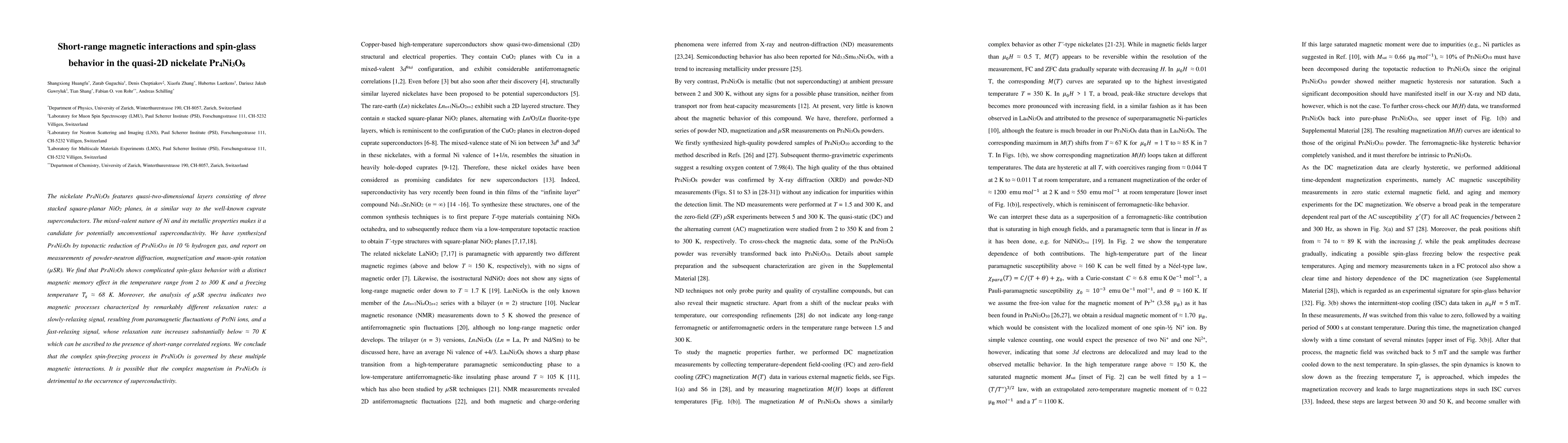 This study investigates the quasi-2D nickelate Pr4Ni3O8, revealing its spin-glass behavior and complex magnetic interactions through neutron diffraction, magnetization, and muon-spin rotation. The material exhibits a freezing temperature of ~68 K and distinct magnetic memory effects, suggesting multiple magnetic processes that may hinder superconductivity.