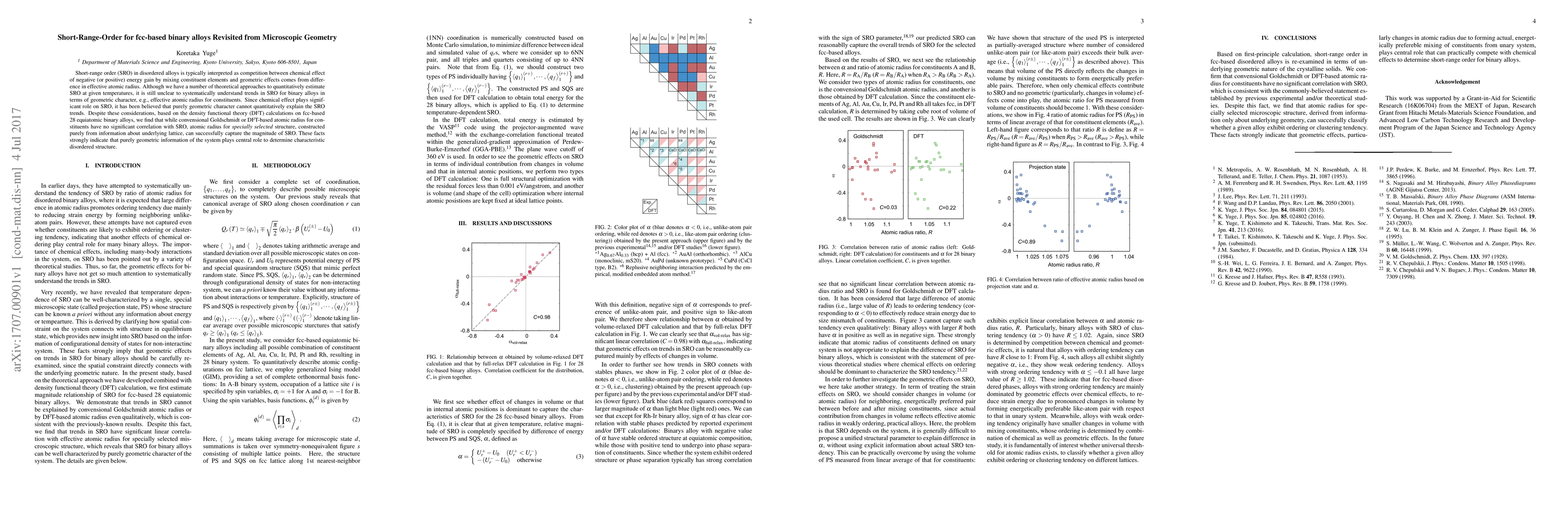 Short-range order (SRO) in disordered alloys is typically interpreted as competition between chemical effect of negative (or positive) energy gain by mixing constituent elements and geometric effects comes from difference in effective atomic radius. Although we have a number of theoretical approaches to quantitatively estimate SRO at given temperatures, it is still unclear to systematically understand trends in SRO for binary alloys in terms of geometric character, e.g., effective atomic radius for constituents. Since chemical effect plays significant role on SRO, it has been believed that purely geometric character cannot quantitatively explain the SRO trends. Despite these considerations, based on the density functional theory (DFT) calculations on fcc-based 28 equiatomic binary alloys, we find that while convensional Goldschmidt or DFT-based atomic radius for constituents have no significant correlation with SRO, atomic radius for specially selected structure, constructed purely from information about underlying lattice, can successfully capture the magnitude of SRO. These facts strongly indicate that purely geometric information of the system plays central role to determine characteristic disordered structure.