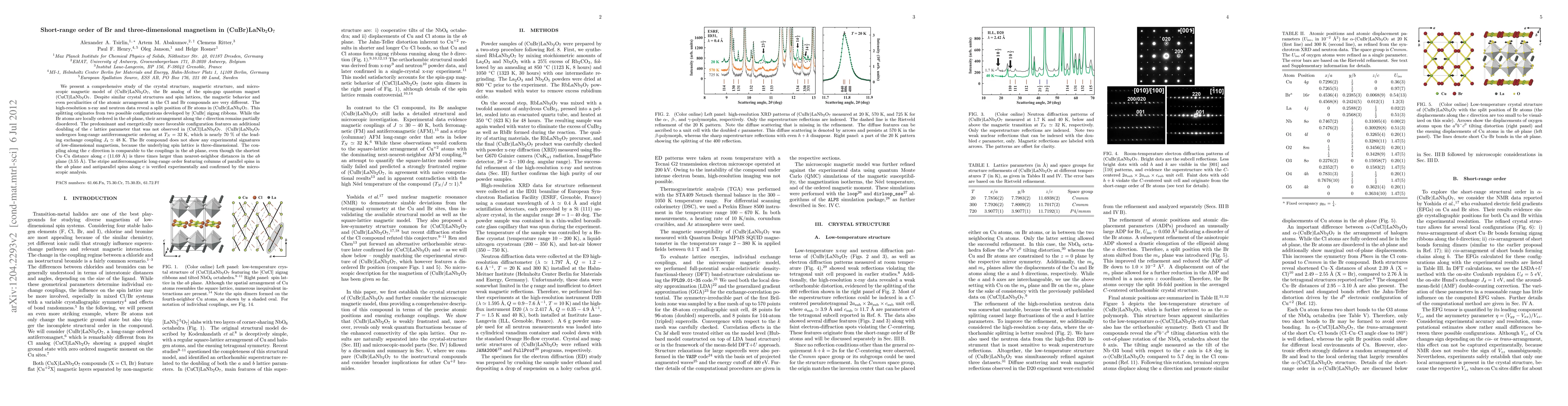 We present a comprehensive study of the crystal structure, magnetic structure, and microscopic magnetic model of (CuBr)LaNb2O7, the Br analog of the spin-gap quantum magnet (CuCl)LaNb2O7. Despite similar crystal structures and spin lattices, the magnetic behavior and even peculiarities of the atomic arrangement in the Cl and Br compounds are very different. The high-resolution x-ray and neutron data reveal a split position of Br atoms in (CuBr)LaNb2O7. This splitting originates from two possible configurations developed by [CuBr] zigzag ribbons. While the Br atoms are locally ordered in the 'ab' plane, their arrangement along the 'c' direction remains partially disordered. The predominant and energetically more favorable configuration features an additional doubling of the 'c' lattice parameter that was not observed in (CuCl)LaNb2O7. (CuBr)LaNb2O7 undergoes long-range antiferromagnetic ordering at TN=32 K, which is nearly 70% of the leading exchange coupling J4~48 K. The Br compound does not show any experimental signatures of low-dimensional magnetism, because the underlying spin lattice is three-dimensional. The coupling along the 'c' direction is comparable to the couplings in the 'ab' plane, even though the shortest Cu--Cu distance along 'c' (11.69 A) is three times larger than nearest-neighbor distances in the 'ab' plane (3.55 A). The stripe antiferromagnetic long-range order featuring columns of parallel spins in the 'ab' plane and antiparallel spins along 'c' is verified experimentally and confirmed by the microscopic analysis.