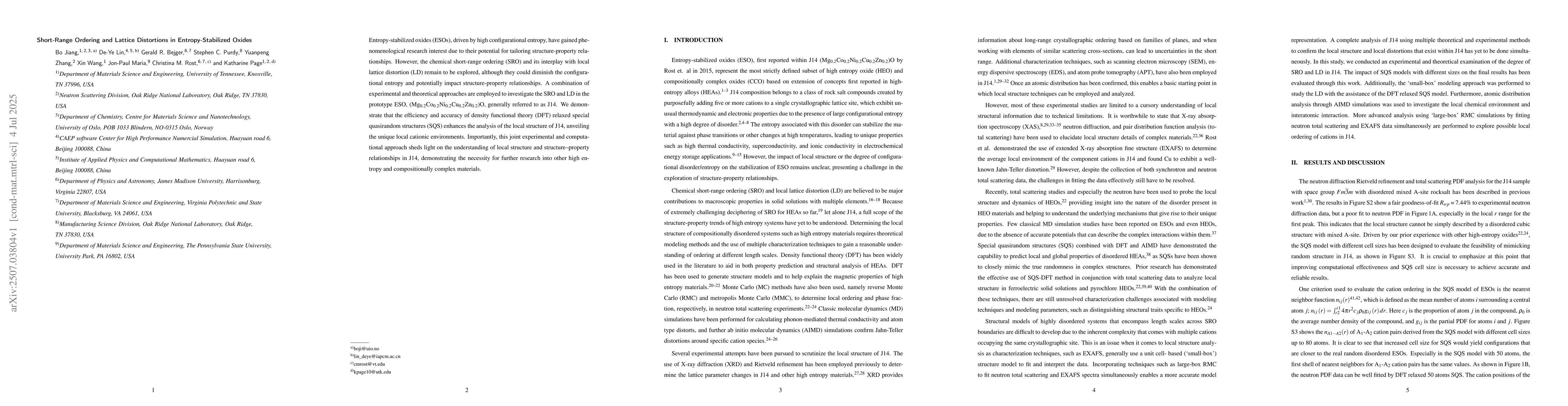 Entropy-stabilized oxides (ESOs), driven by high configurational entropy, have gained phenomenological research interest due to their potential for tailoring structure property relationships. However, the chemical short range ordering (SRO) and its interplay with local lattice distortion (LD) remain to be explored, although they could diminish the configurational entropy and potentially impact structure property relationships. A combination of experimental and theoretical approaches are employed to investigate the SRO and LD in the prototype ESO, Mg0.2Co0.2Ni0.2Cu0.2Zn0.2O, generally referred to as J14. We demonstrate that the efficiency and accuracy of density functional theory (DFT) relaxed special quasirandom structures (SQS) enhances the analysis of the local structure of J14, unveiling the unique local cationic environments. Importantly, this joint experimental and computational approach sheds light on the understanding of local structure and structure property relationships in J14, demonstrating the necessity for further research into other high entropy and compositionally complex materials.