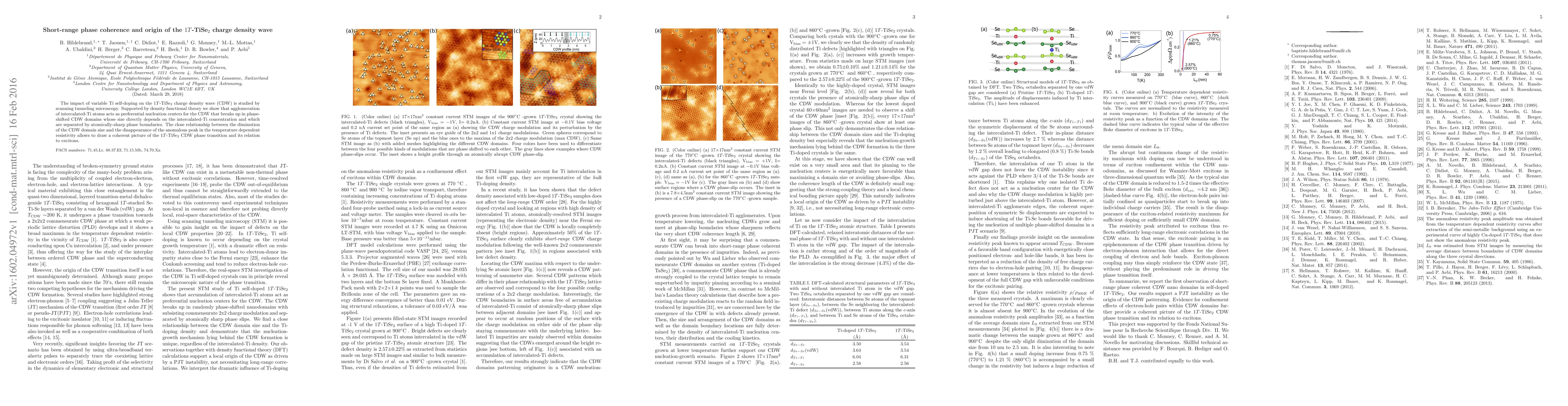 This study investigates the effect of Ti self-doping on the charge density wave (CDW) in 1T-TiSe2 using scanning tunneling microscopy and density functional theory. It finds that intercalated-Ti atoms create nucleation centers for CDWs, leading to phaseshifted domains whose size correlates with Ti concentration and marks a phase transition linked to excitons.