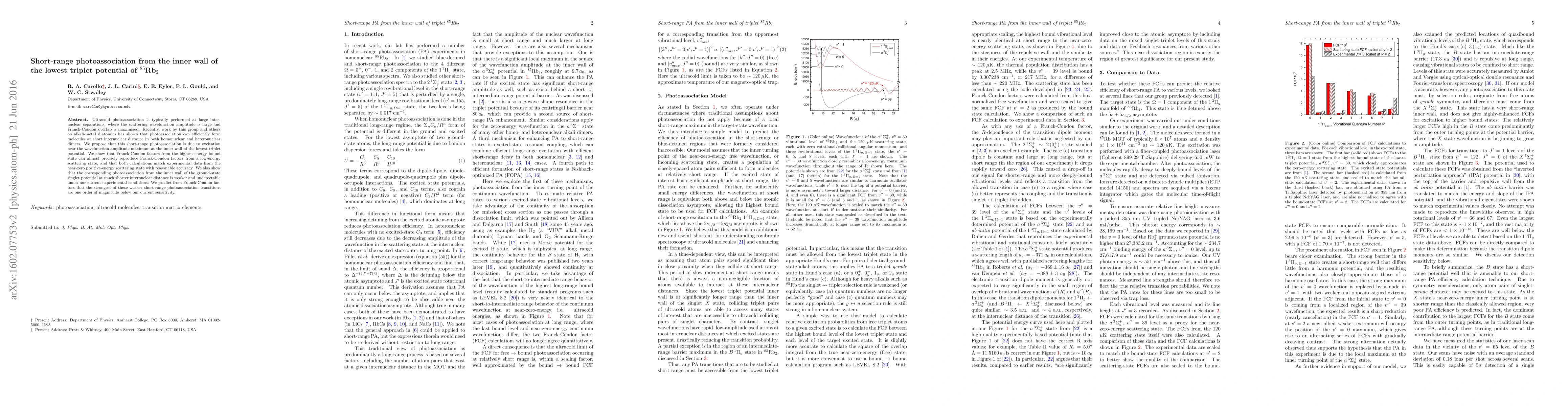 Ultracold photoassociation is typically performed at large internuclear separations, where the scattering wavefunction amplitude is large and Franck-Condon overlap is maximized. Recently, work by this group and others on alkali-metal diatomics has shown that photoassociation can efficiently form molecules at short internuclear distance in both homonuclear and heteronuclear dimers. We propose that this short-range photoassociation is due to excitation near the wavefunction amplitude maximum at the inner wall of the lowest triplet potential. We show that Franck-Condon factors from the highest-energy bound state can almost precisely reproduce Franck-Condon factors from a low-energy scattering state, and that both calculations match experimental data from the near-zero positive-energy scattering state with reasonable accuracy. We also show that the corresponding photoassociation from the inner wall of the ground-state singlet potential at much shorter internuclear distance is weaker and undetectable under our current experimental conditions. We predict from Franck-Condon factors that the strongest of these weaker short-range photoassociation transitions are one order of magnitude below our current sensitivity.