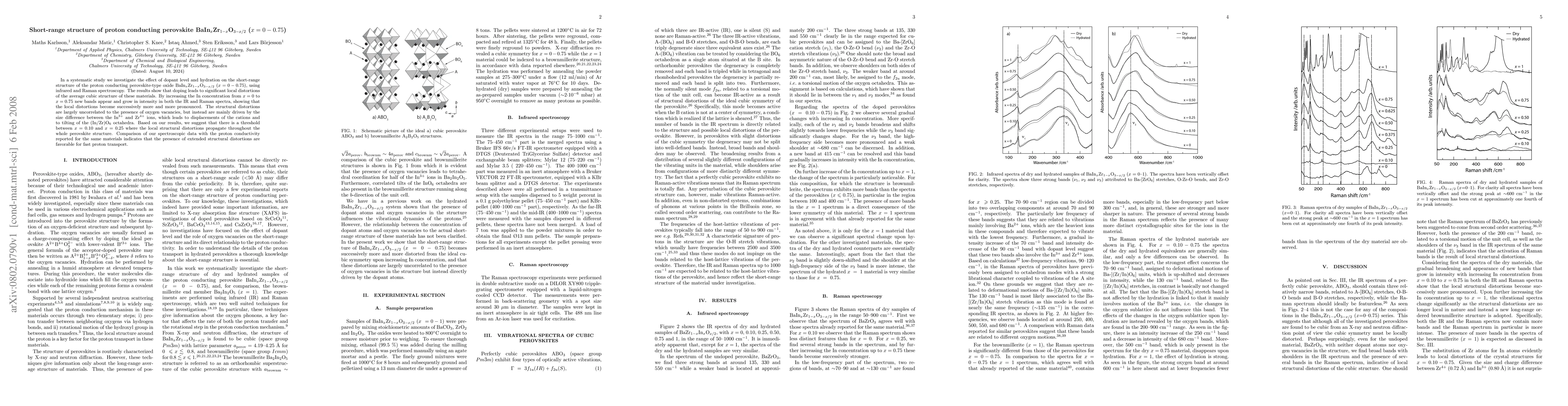 In a systematic study we investigate the effect of dopant level and hydration on the short-range structure of the proton conducting perovskite-type oxide BaIn_{x}Zr_{1-x}O_{3-x/2} (x = 0-0.75), using infrared and Raman spectroscopy. The results show that doping leads to significant local distortions of the average cubic structure of these materials. By increasing the In concentration from x = 0 to x = 0.75 new bands appear and grow in intensity in both the IR and Raman spectra, showing that the local distortions become successively more and more pronounced. The structural distortions are largely uncorrelated to the presence of oxygen vacancies, but instead are mainly driven by the size difference between the In^{3+} and Zr^{4+} ions, which leads to displacements of the cations and to tilting of the (In/Zr)O_{6} octahedra. Based on our results, we suggest that there is a threshold between x = 0.10 and x = 0.25 where the local structural distortions propagate throughout the whole perovskite structure. Comparison of our spectroscopic data with the proton conductivity reported for the same materials indicates that the presence of extended structural distortions are favorable for fast proton transport.