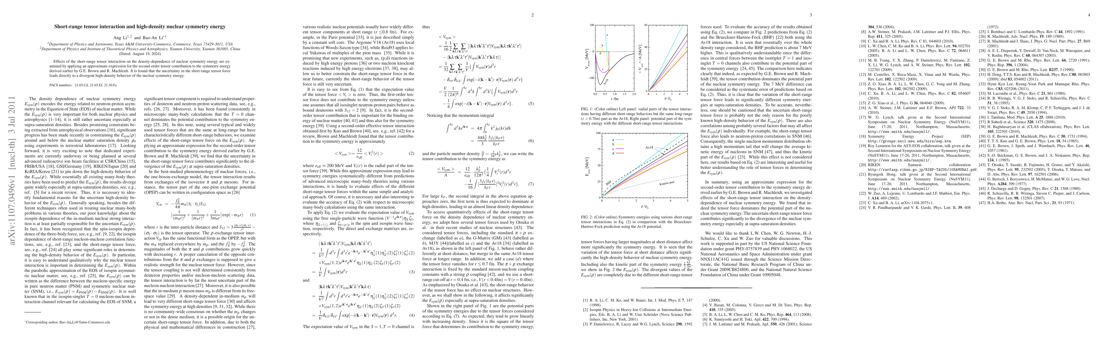 This paper investigates how short-range tensor interactions influence the density-dependence of nuclear symmetry energy, revealing that uncertainties in these interactions cause the nuclear symmetry energy to exhibit divergent behavior at high densities.