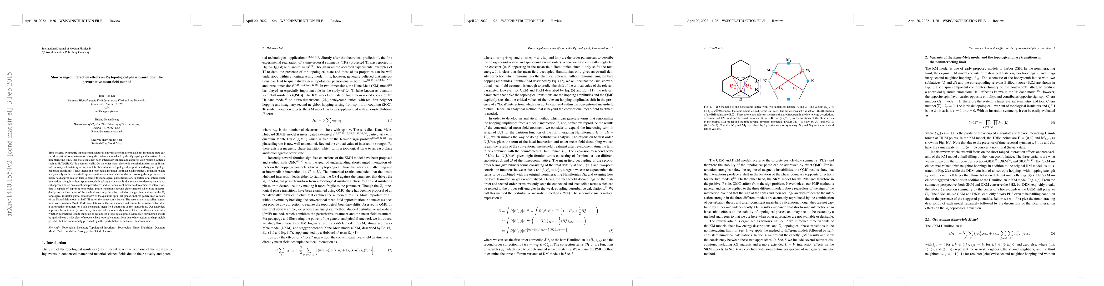 Time-reversal symmetric topological insulator is a novel state of matter that a bulk-insulating state carries dissipationless spin transport along the surfaces, embedded by the $Z_2$ topological invariant. In the noninteracting limit, this exotic state has been intensively studied and explored with realistic systems, such as HgTe/(Hg,Cd)Te quantum wells. Yet an interacting topological insulator is still an elusive subject, and most related analyses rely on the mean-field approximation and numerical simulations. Among the approaches, the mean-field approximation fails to predict the topological phase transition, in particular at intermediate interaction strength without spontaneously breaking symmetry. In this review, we develop an analytical approach based on a combined perturbative and self-consistent mean-field treatment of interactions that is capable of capturing topological phase transitions beyond either method when used independently. As an illustration of the method, we study the effects of short-ranged interactions on the $Z_2$ topological insulator phase, also known as the quantum spin Hall phase, in three generalized versions of the Kane-Mele model at half-filling on the honeycomb lattice. The results are in excellent agreement with quantum Monte Carlo calculations on the same model, and cannot be reproduced by either a perturbative treatment or a self-consistent mean-field treatment of the interactions. Our analytical approach helps to clarify how the symmetries of the one-body terms of the Hamiltonian determine whether interactions tend to stabilize or destabilize a topological phase. Moreover, our method should be applicable to a wide class of models where topological transitions due to interactions are in principle possible, but are not correctly predicted by either perturbative or self-consistent treatments.