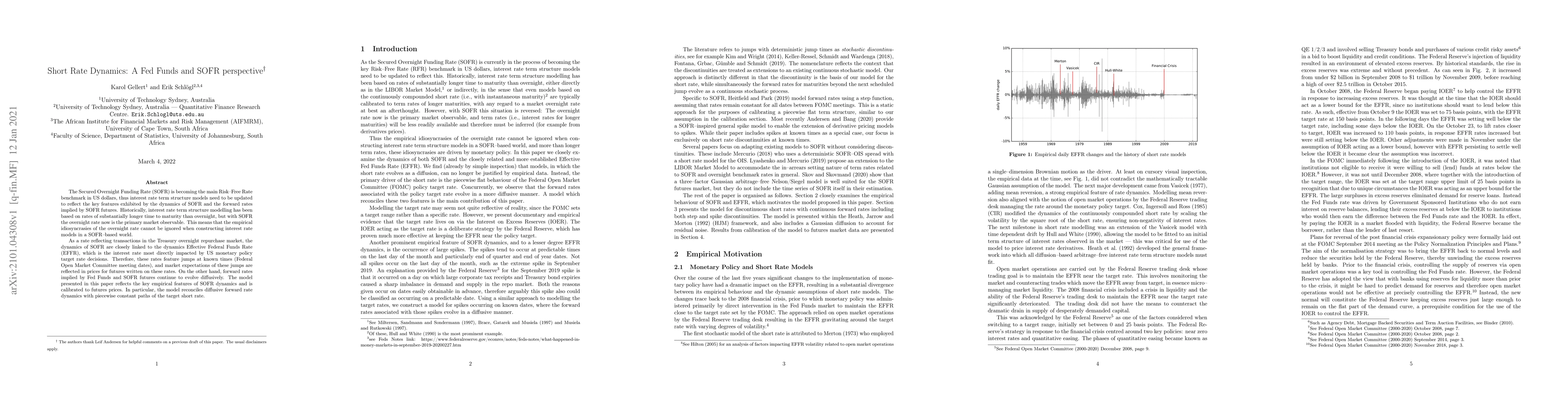 The Secured Overnight Funding Rate (SOFR) is becoming the main Risk-Free Rate benchmark in US dollars, thus interest rate term structure models need to be updated to reflect the key features exhibited by the dynamics of SOFR and the forward rates implied by SOFR futures. Historically, interest rate term structure modelling has been based on rates of substantially longer time to maturity than overnight, but with SOFR the overnight rate now is the primary market observable. This means that the empirical idiosyncrasies of the overnight rate cannot be ignored when constructing interest rate models in a SOFR-based world. As a rate reflecting transactions in the Treasury overnight repurchase market, the dynamics of SOFR are closely linked to the dynamics of the Effective Federal Funds Rate (EFFR), which is the interest rate most directly impacted by US monetary policy target rate decisions. Therefore, these rates feature jumps at known times (Federal Open Market Committee meeting dates), and market expectations of these jumps are reflected in prices for futures written on these rates. On the other hand, forward rates implied by Fed Funds and SOFR futures continue to evolve diffusively. The model presented in this paper reflects the key empirical features of SOFR dynamics and is calibrated to futures prices. In particular, the model reconciles diffusive forward rate dynamics with piecewise constant paths of the target short rate.