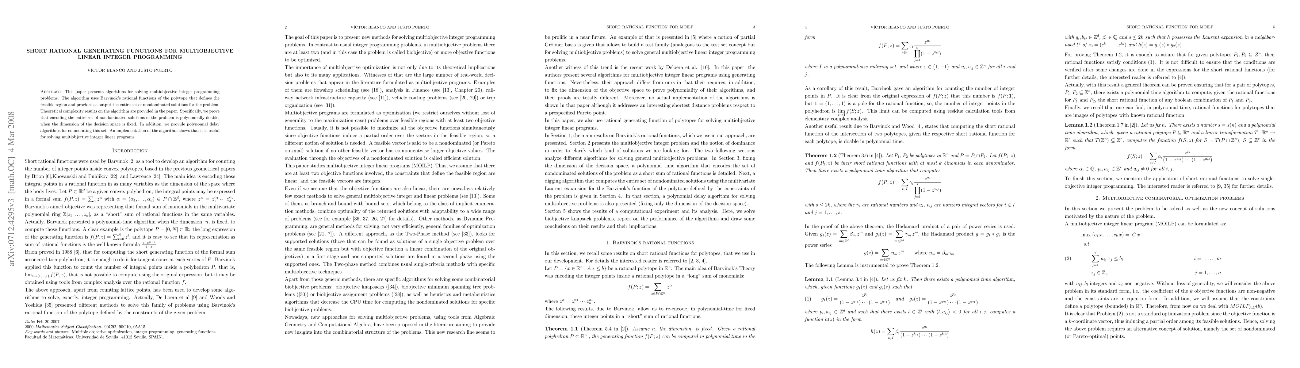 This paper introduces algorithms utilizing Barvinok's rational generating functions to solve multiobjective integer programming problems, providing polynomial complexity for encoding nondominated solutions when the dimension is fixed, and offering efficient enumeration techniques. The approach is shown to be effective through implementation on multiobjective integer linear programs.
