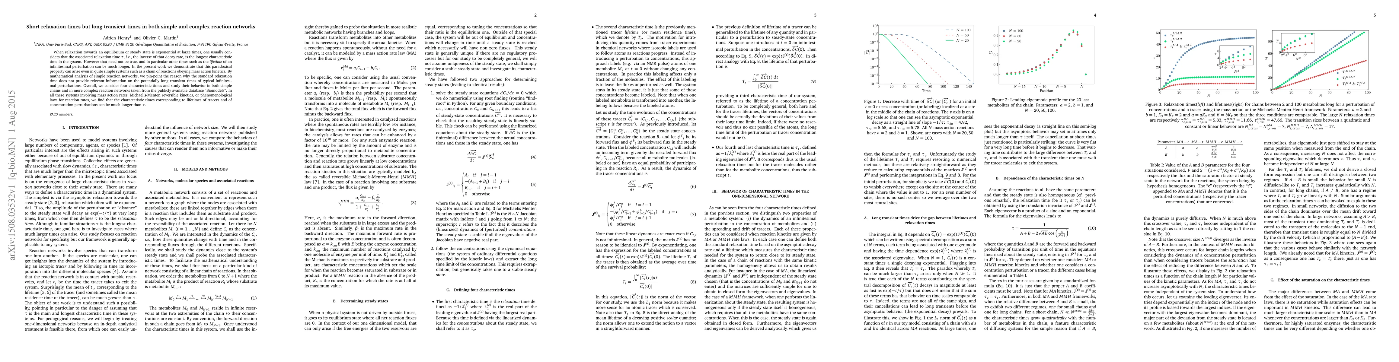 A study shows that in simple reaction networks, relaxation times can be short but transient times for infinitesimal perturbations can be long, contradicting the typical assumption that relaxation time is the longest characteristic time.