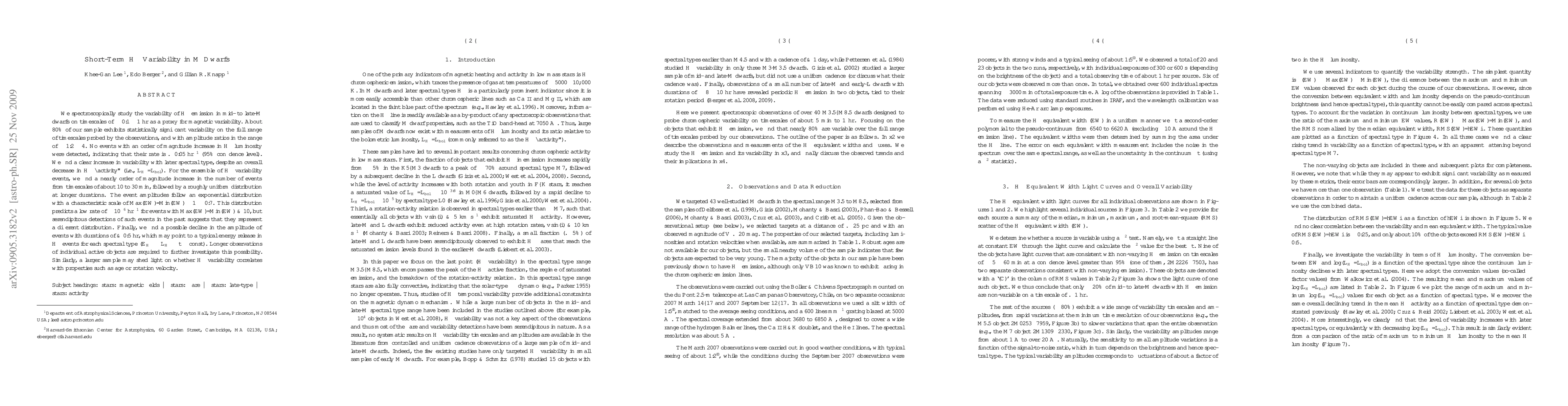 A study of H-alpha emission in mid- to late-M dwarfs reveals that about 80% show variability over short timescales, with no events exceeding a magnitude increase in luminosity. The rate of such events is estimated to be less than 0.05 per hour.
