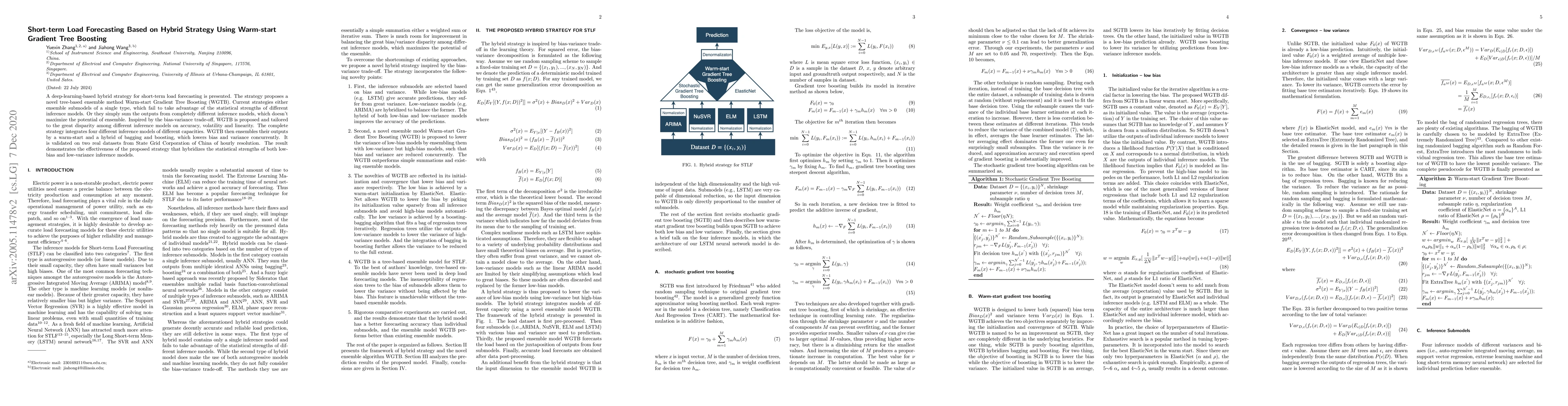 A new method called Warm-start Gradient Tree Boosting (WGTB) is proposed for short-term load forecasting, combining four different inference models to achieve a balance between accuracy, volatility, and linearity. The approach demonstrates effectiveness on real-world datasets from China.