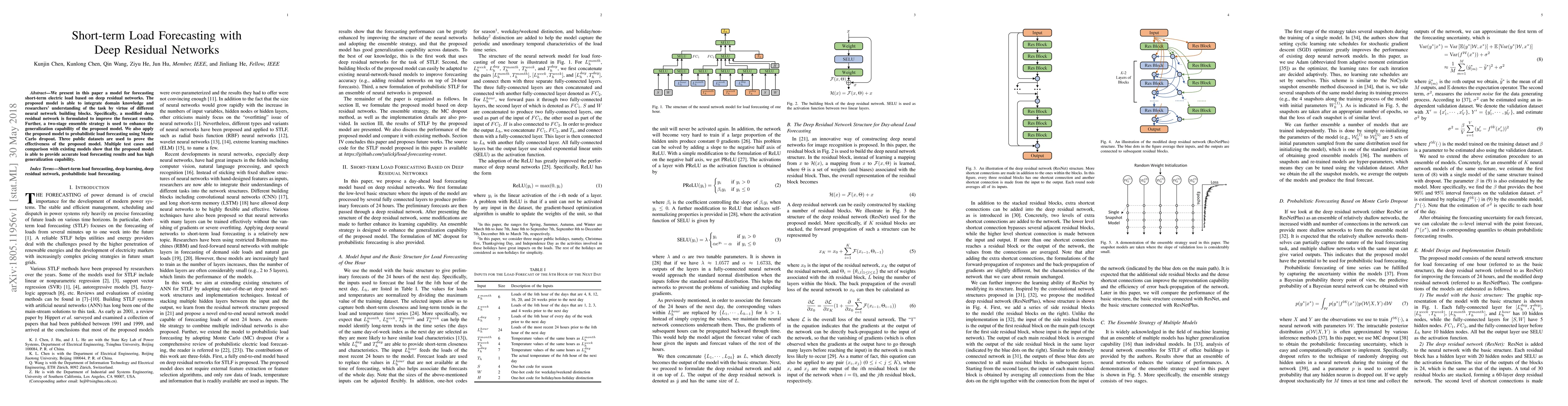 This paper proposes a short-term power load forecasting model using a modified deep residual network, enhanced by a two-stage ensemble strategy and probabilistic forecasting via Monte Carlo dropout. The model demonstrates high accuracy and generalization across multiple datasets compared to existing methods.