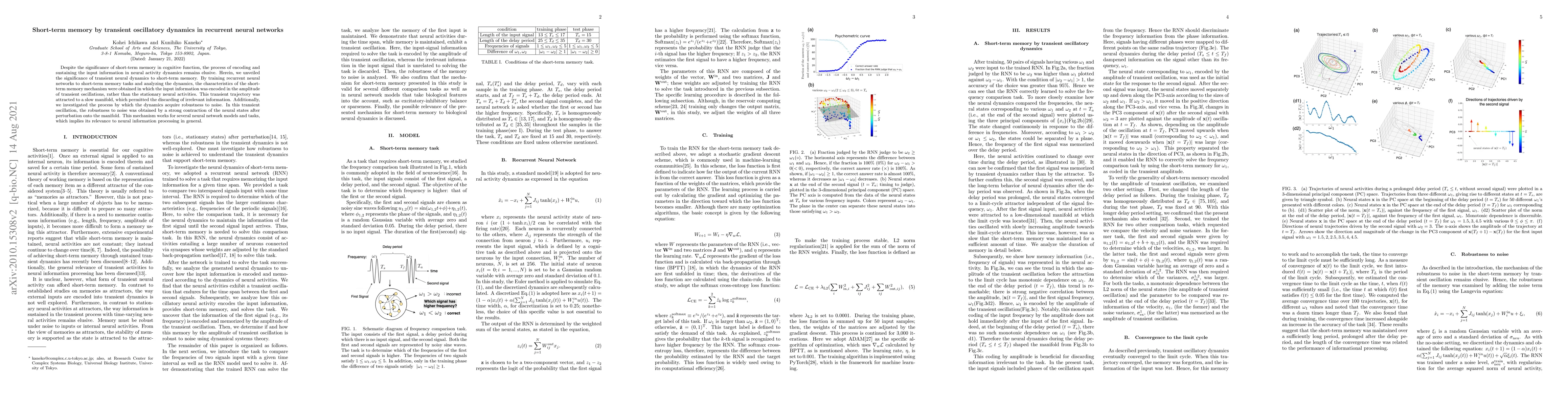 This paper explores how transient oscillatory dynamics in recurrent neural networks encode and sustain short-term memory, revealing that input information is encoded in the amplitude of these oscillations rather than in stationary activities. The transient dynamics exhibit robustness to noise through a strong contraction onto a slow manifold, suggesting a general mechanism for neural information processing.