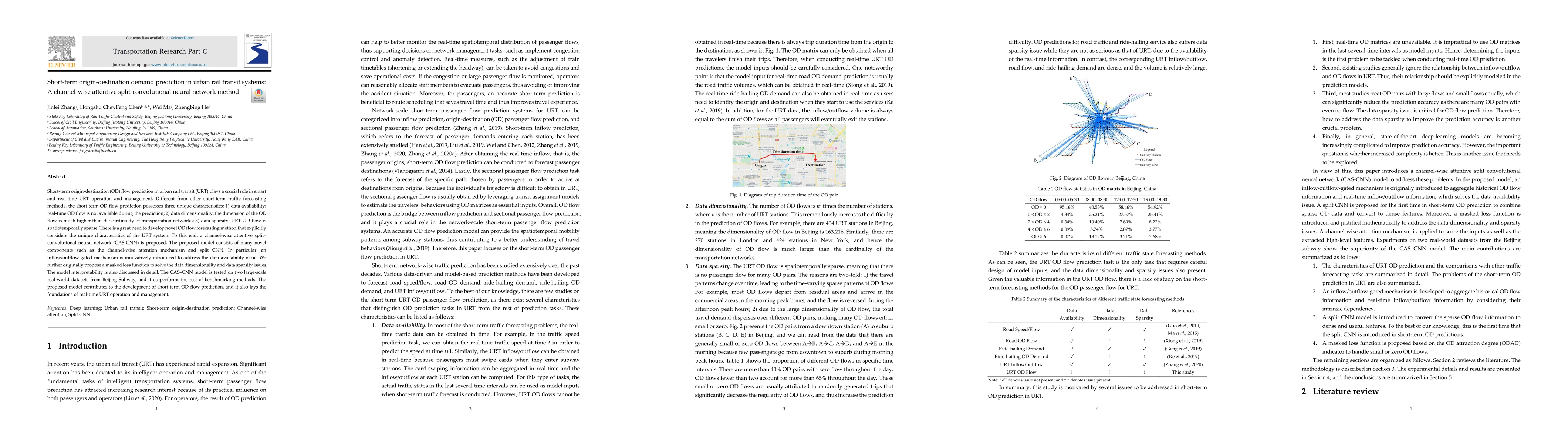 Short-term origin-destination (OD) flow prediction in urban rail transit (URT) plays a crucial role in smart and real-time URT operation and management. Different from other short-term traffic forecasting methods, the short-term OD flow prediction possesses three unique characteristics: (1) data availability: real-time OD flow is not available during the prediction; (2) data dimensionality: the dimension of the OD flow is much higher than the cardinality of transportation networks; (3) data sparsity: URT OD flow is spatiotemporally sparse. There is a great need to develop novel OD flow forecasting method that explicitly considers the unique characteristics of the URT system. To this end, a channel-wise attentive split-convolutional neural network (CAS-CNN) is proposed. The proposed model consists of many novel components such as the channel-wise attention mechanism and split CNN. In particular, an inflow/outflow-gated mechanism is innovatively introduced to address the data availability issue. We further originally propose a masked loss function to solve the data dimensionality and data sparsity issues. The model interpretability is also discussed in detail. The CAS-CNN model is tested on two large-scale real-world datasets from Beijing Subway, and it outperforms the rest of benchmarking methods. The proposed model contributes to the development of short-term OD flow prediction, and it also lays the foundations of real-time URT operation and management.