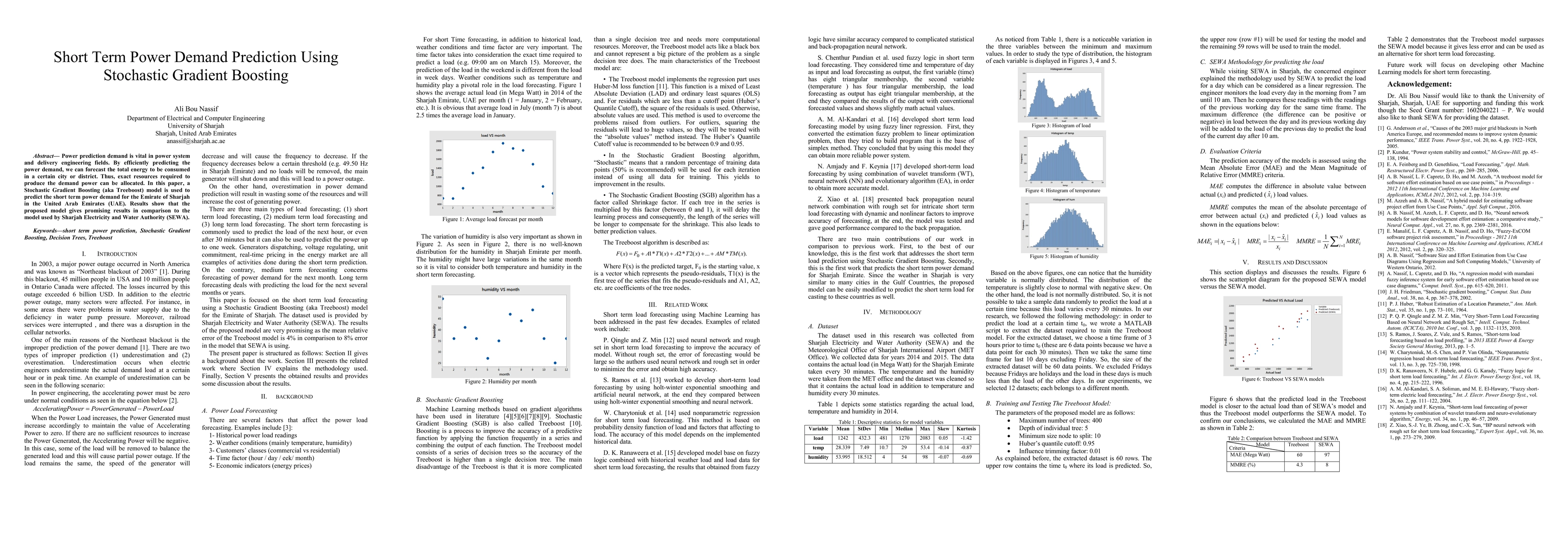 A Stochastic Gradient Boosting model predicts short-term power demand in Sharjah, UAE with promising results, improving upon the existing SEWA model. This improves resource allocation for power production.