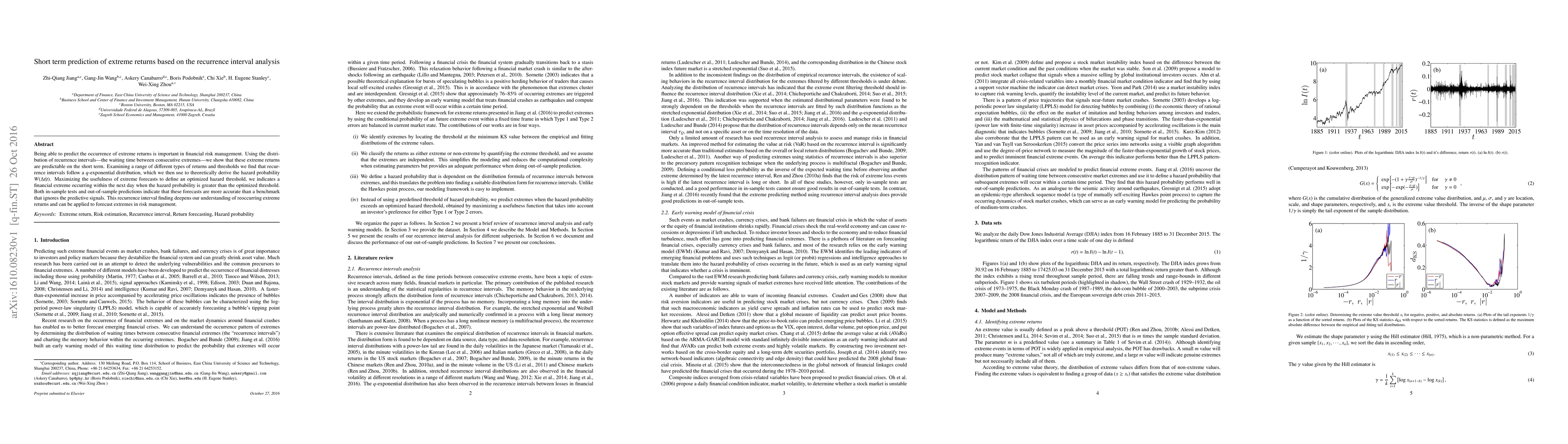 This paper proposes a method to predict short-term extreme returns in financial markets using recurrence interval analysis, showing that extreme returns follow a $q$-exponential distribution. The derived hazard probability model outperforms traditional benchmarks in predicting financial extremes, enhancing risk management strategies.