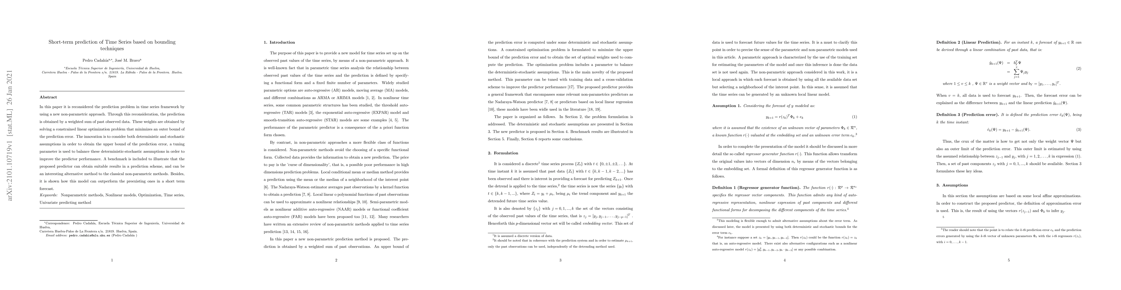In this paper it is reconsidered the prediction problem in time series framework by using a new non-parametric approach. Through this reconsideration, the prediction is obtained by a weighted sum of past observed data. These weights are obtained by solving a constrained linear optimization problem that minimizes an outer bound of the prediction error. The innovation is to consider both deterministic and stochastic assumptions in order to obtain the upper bound of the prediction error, a tuning parameter is used to balance these deterministic-stochastic assumptions in order to improve the predictor performance. A benchmark is included to illustrate that the proposed predictor can obtain suitable results in a prediction scheme, and can be an interesting alternative method to the classical non-parametric methods. Besides, it is shown how this model can outperform the preexisting ones in a short term forecast.